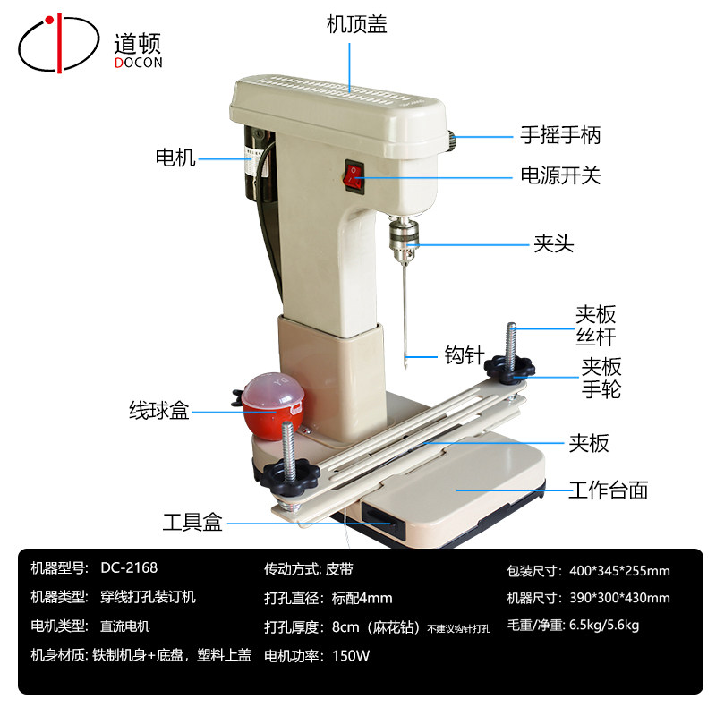 道顿 DC-2168 穿线式电动打孔装订机 财务凭证会计 档案 装线 票据 电动打孔线装机