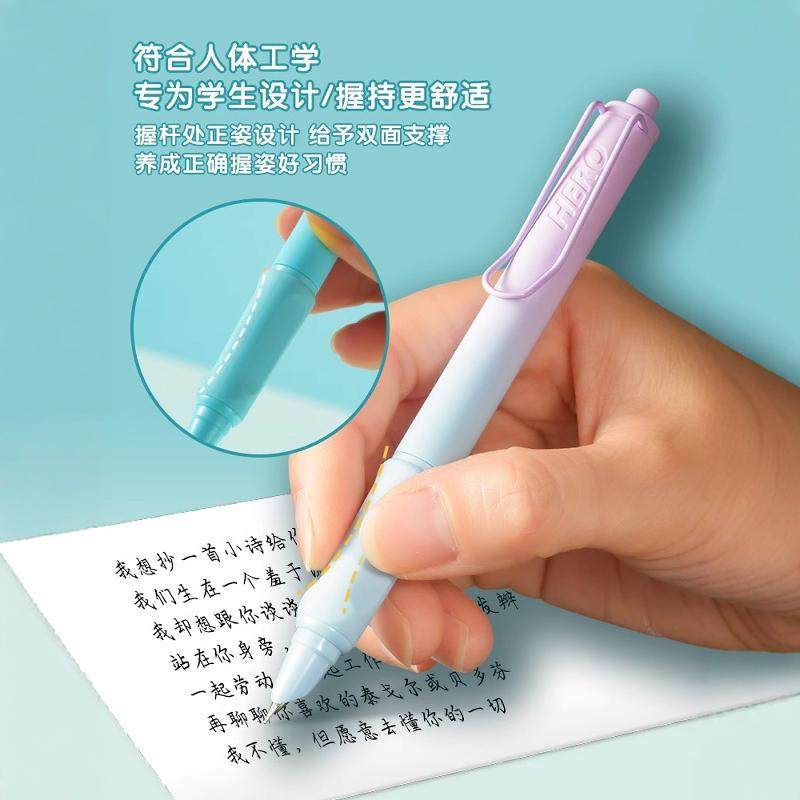 HERO/英雄1356按动钢笔可擦小学生用三年级初学者练字可替换墨囊吸墨官方旗舰店官非碳素墨水免费定制刻字