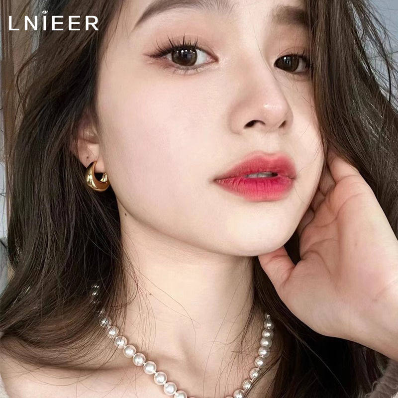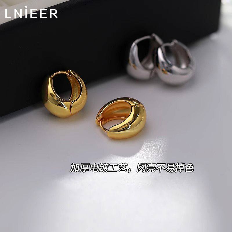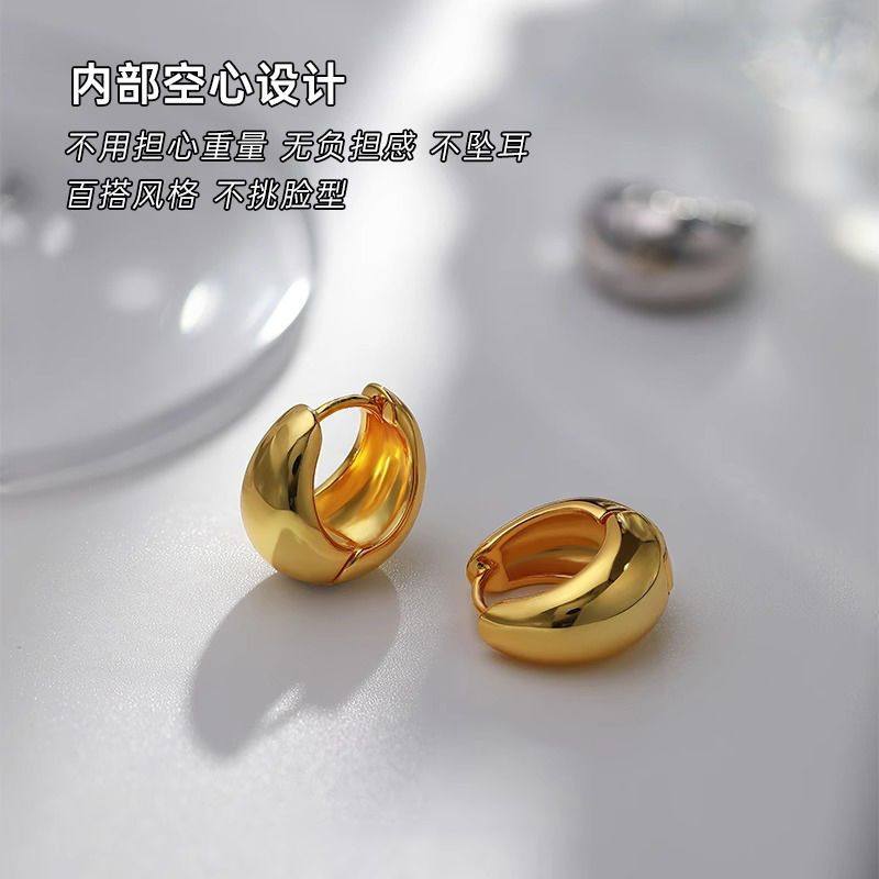 水滴耳环轻奢高级感耳圈耳扣2025新款素圈欧美金色耳饰品耳钉简约