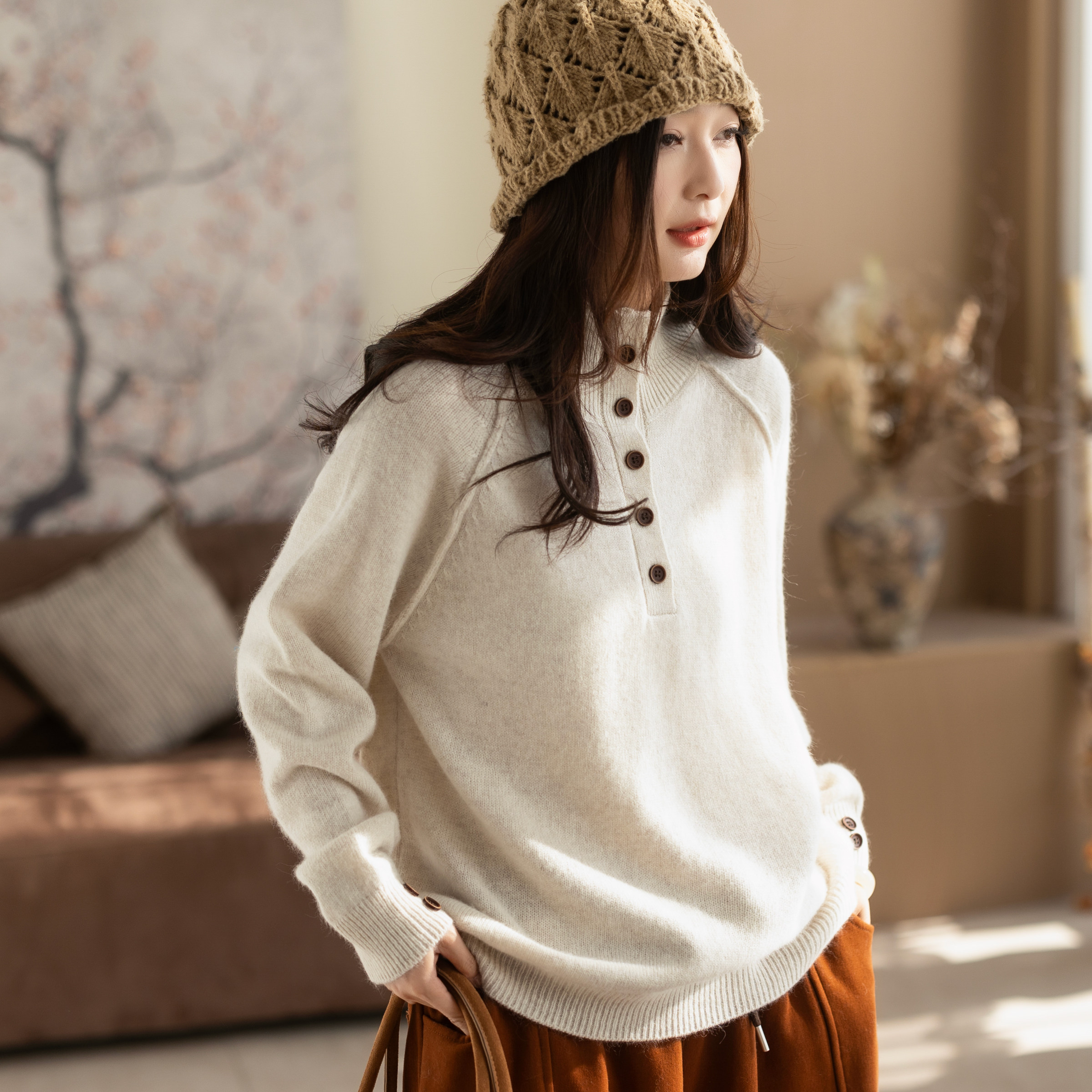 鄂尔多斯市断码羊绒开衫女春秋新款宽松毛衣外套翻领针织羊毛衫