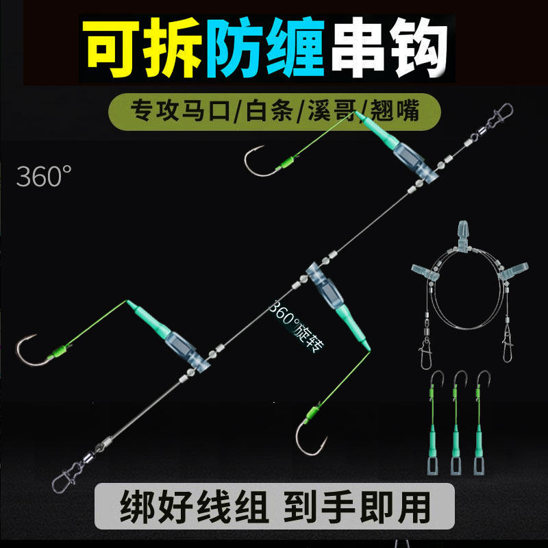 新型串钩钓组防缠绕线组手竿白条鲫鱼路亚翘嘴伊势尼丸世金袖鱼钩
