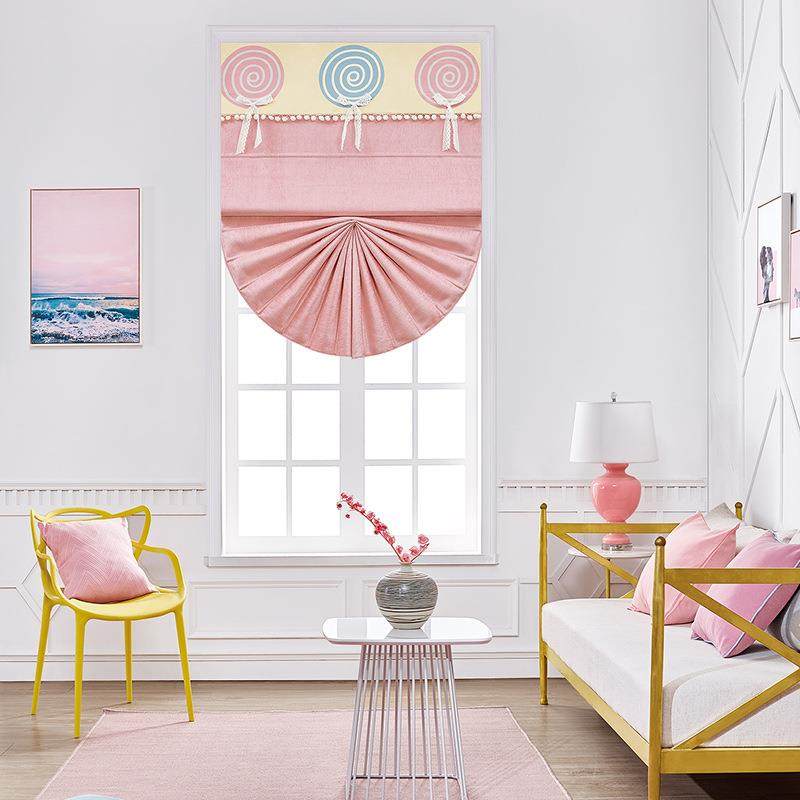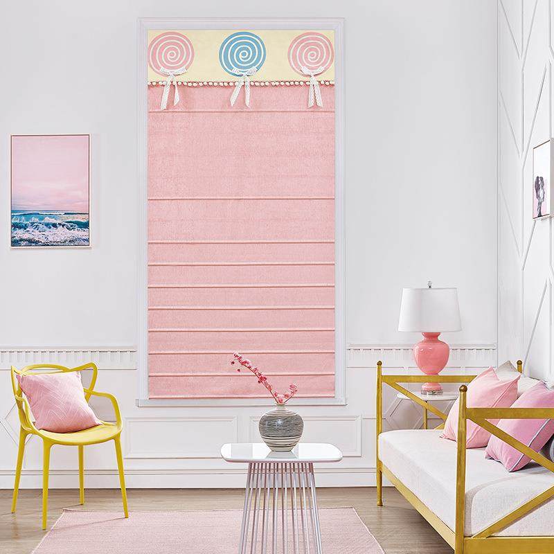 厂家供应遮阳粉色少女罗马帘成品 简约升降折帘卷帘成品升降窗帘