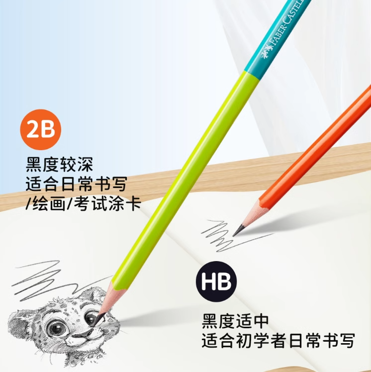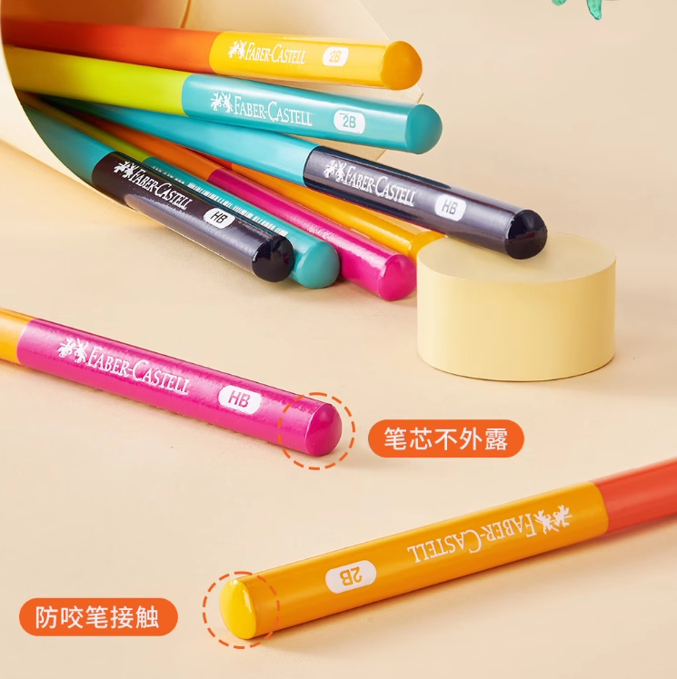 辉柏嘉三角木杆铅笔无铅毒小学生专用HB 2B一二年级幼儿园初学者矫正握姿书法硬笔练字素描绘画考试涂卡铅笔