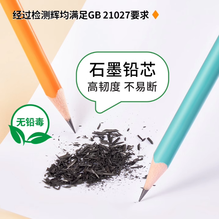 小学生铅笔2b铅笔考试专用hb书写铅笔无铅毒绿色幼儿园儿童学习用橡皮不易断原木硬度开学铅芯