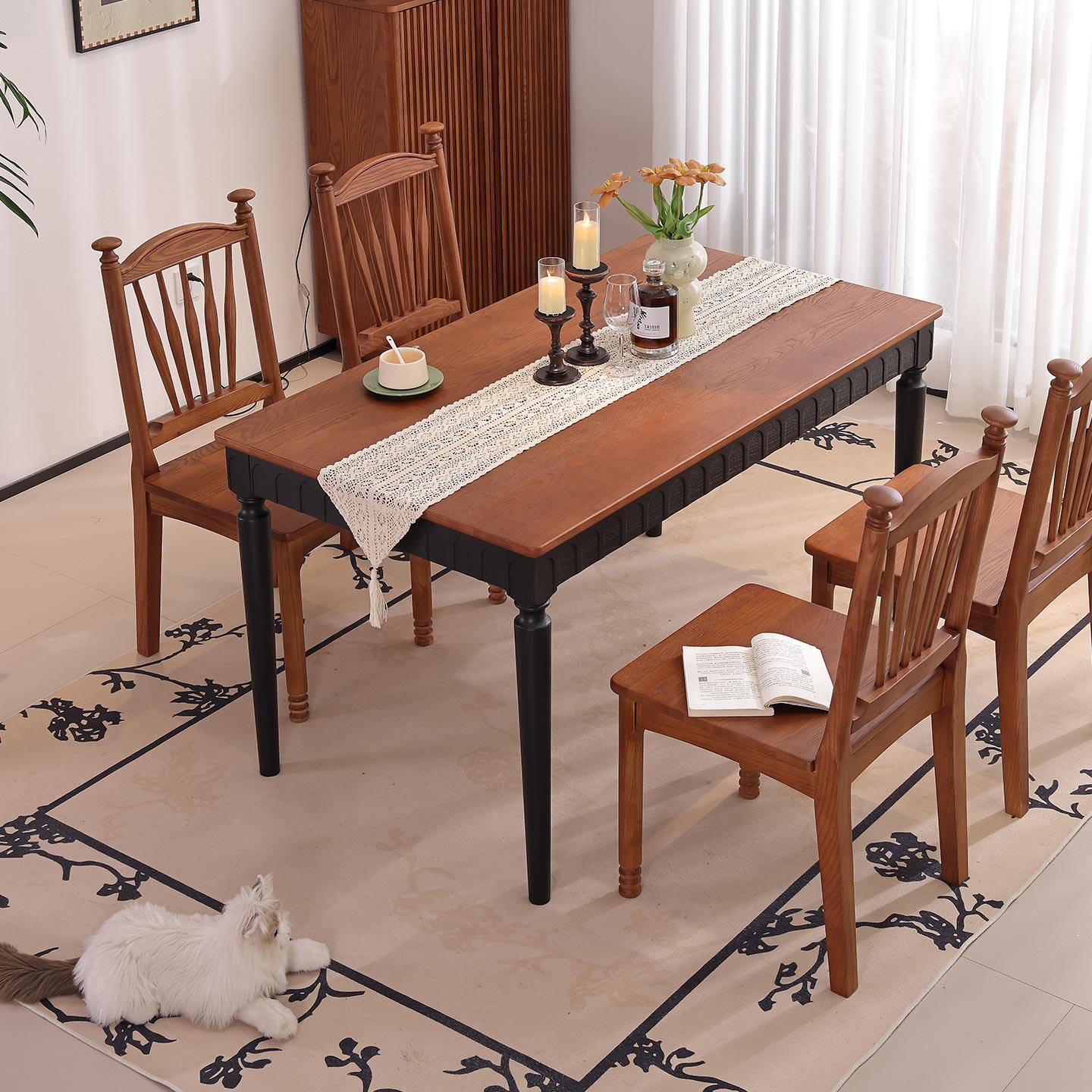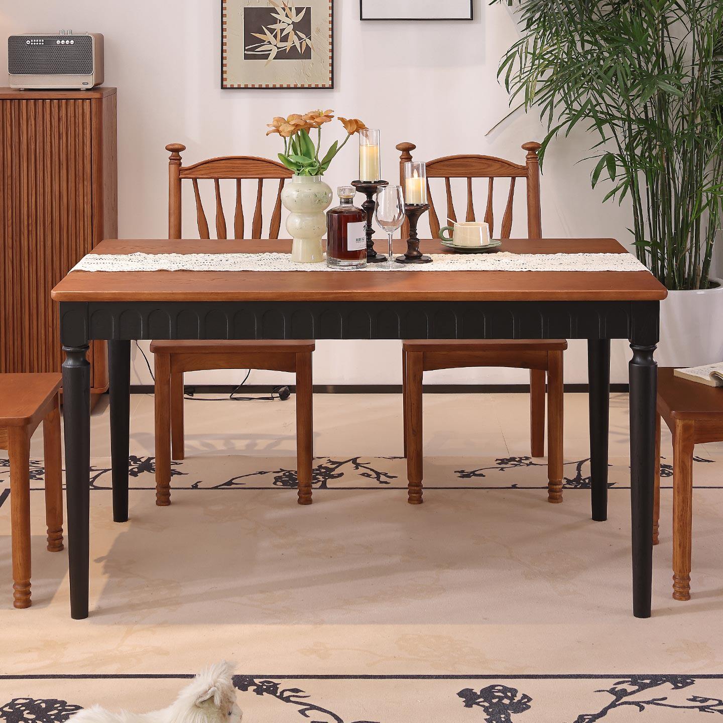 一林半舍中古风全实木餐桌椅组合家用小户型客厅桌椅组合吃饭桌子