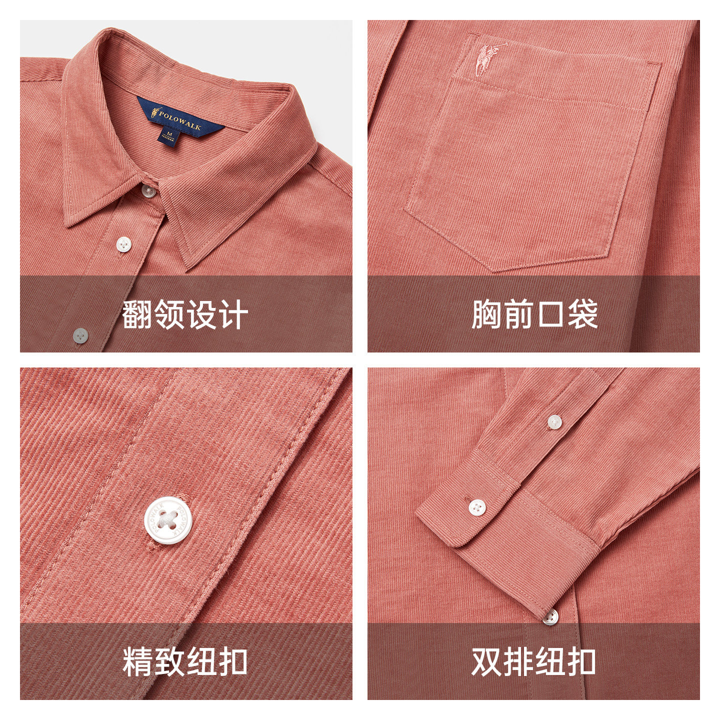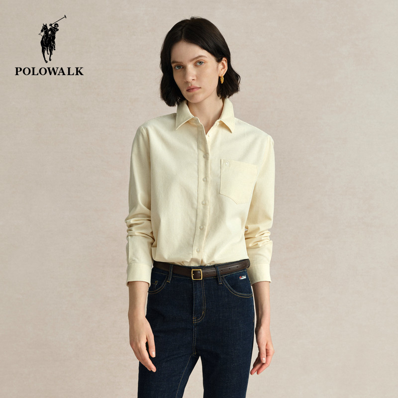 POLOWALK纯棉灯芯绒衬衫女士通勤春款外套百搭长袖内搭衬衣上衣
