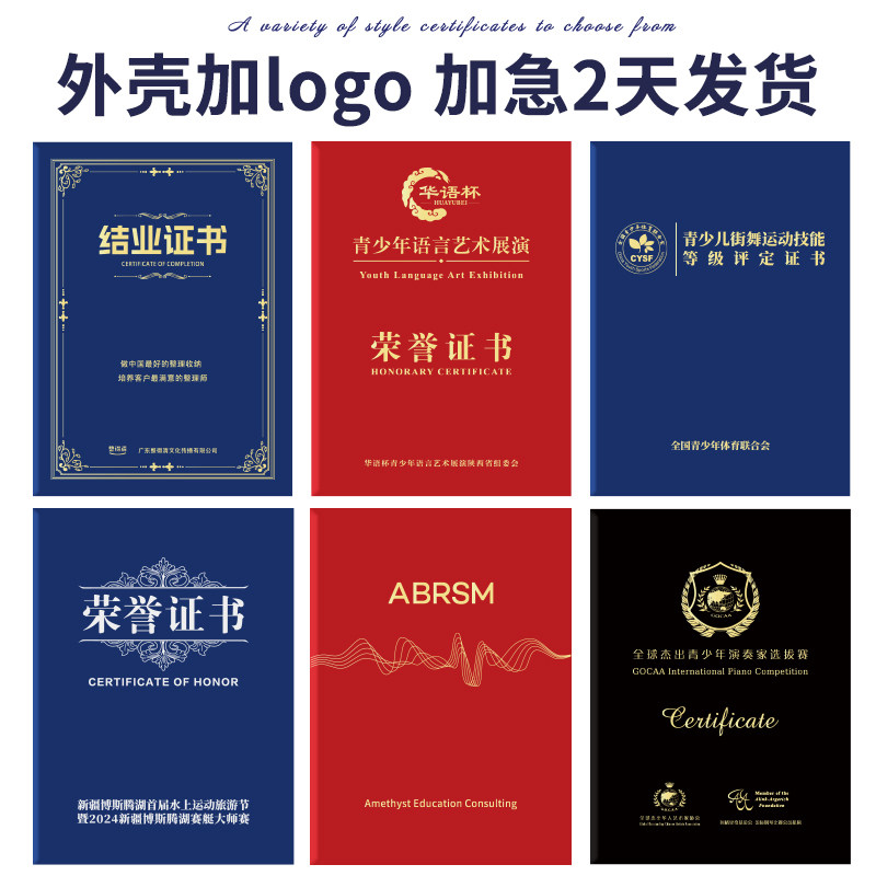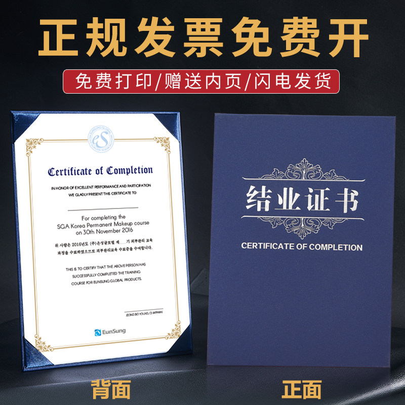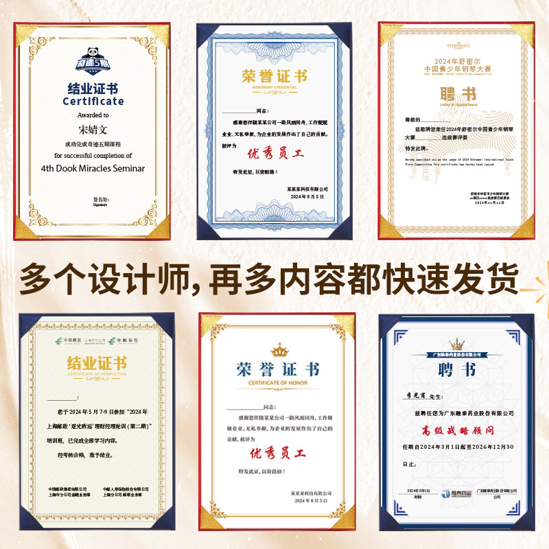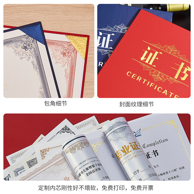 营养师证书外壳单片定制珠光不折放A4竖内页证书优秀员工获奖授权