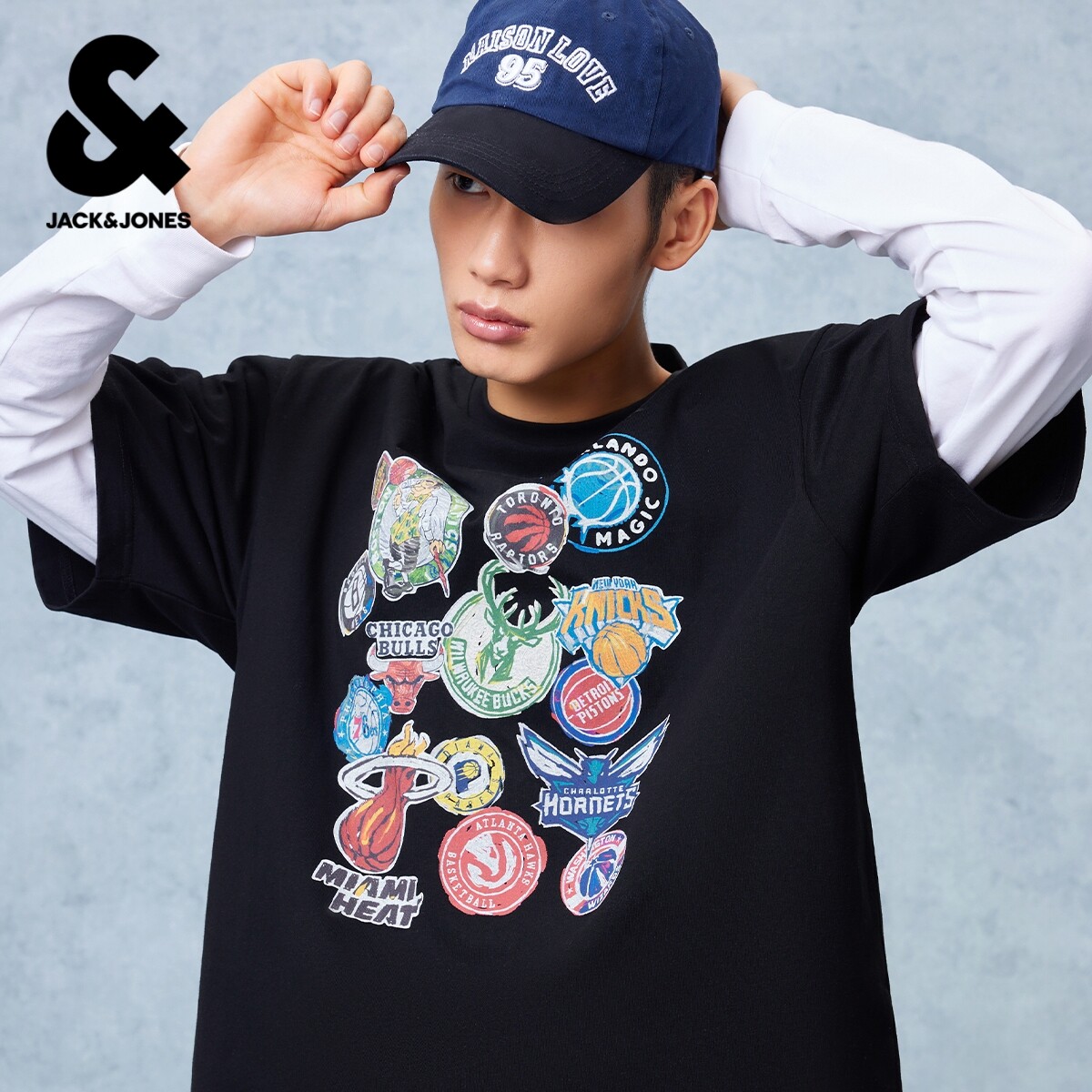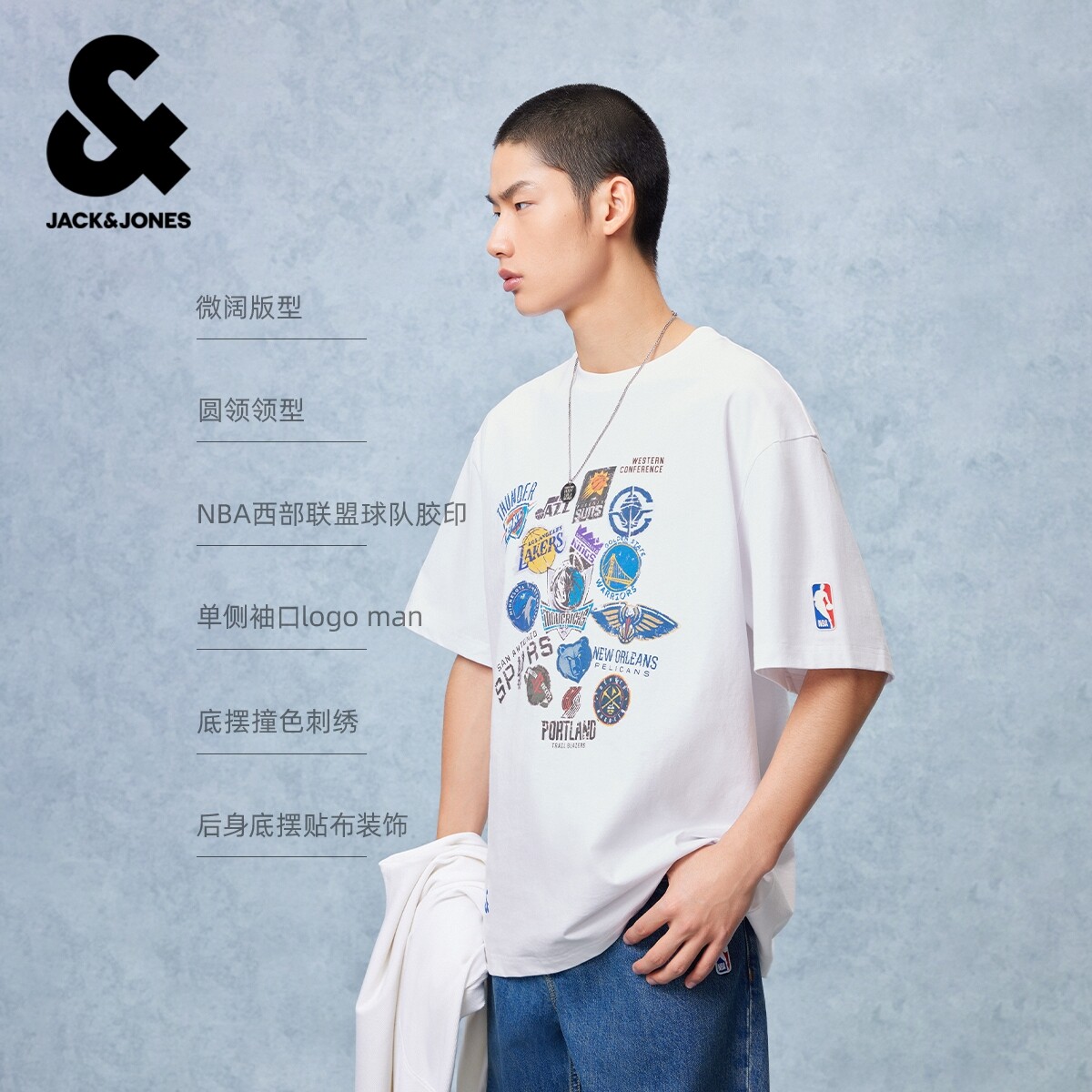 【NBA联名联盟球队】杰克琼斯男装夏季款重磅纯棉T恤宽松圆领短袖
