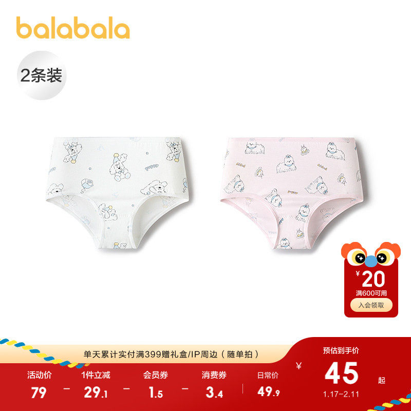 巴拉巴拉女童内裤棉平角大童四角短裤抗菌裆舒适潮流