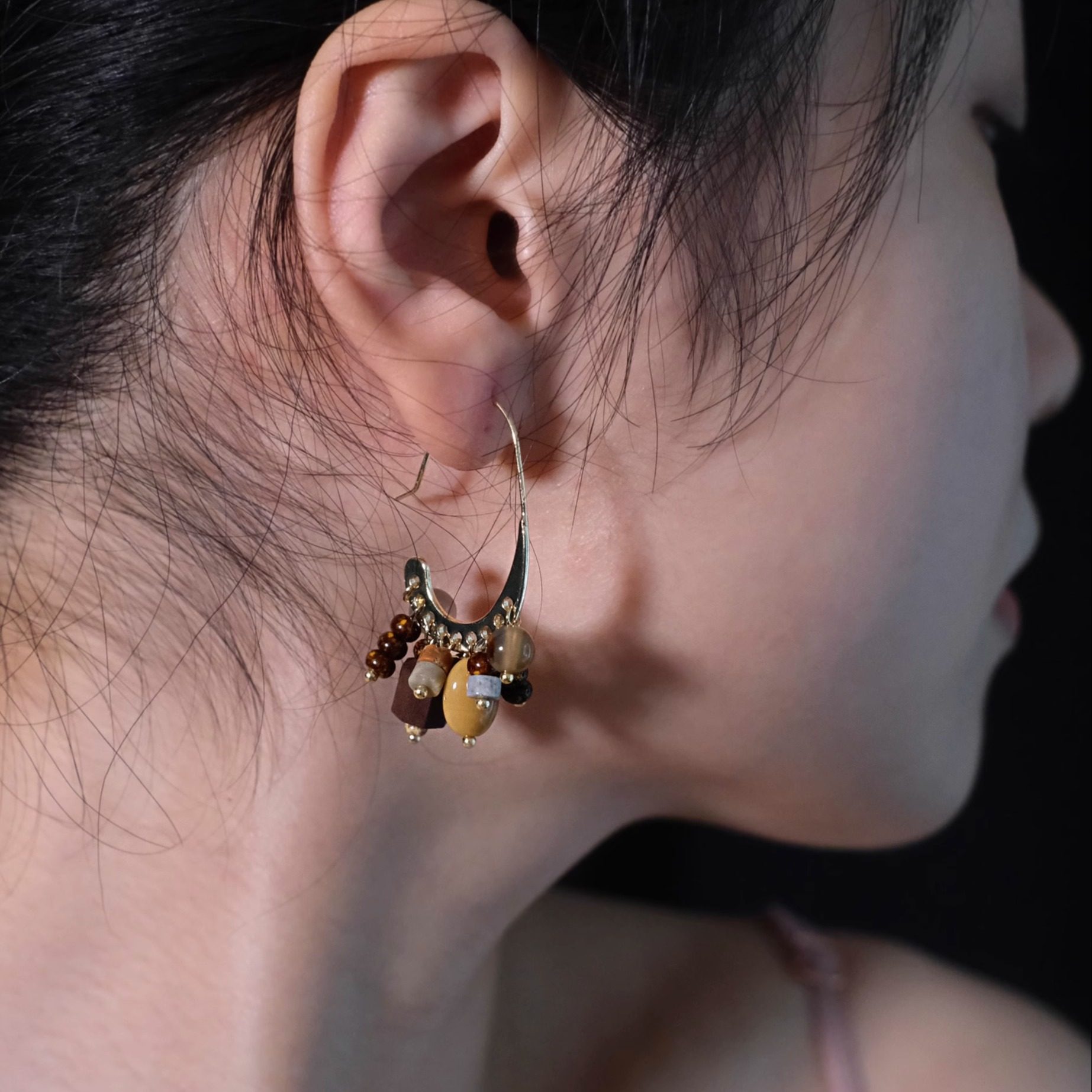 知更鸟|枯木焚香原创新中式诧疾风禅意复古琉璃珠藏元素耳环耳饰