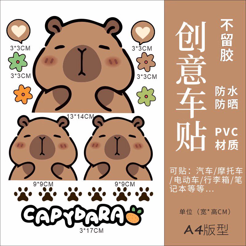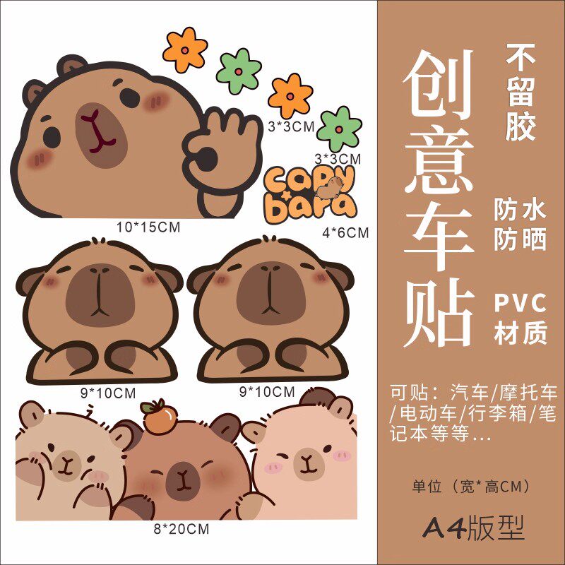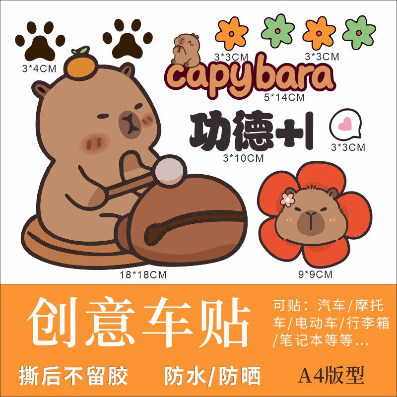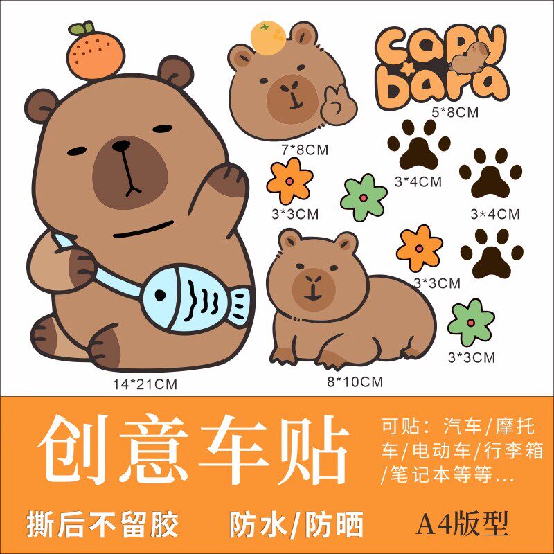 卡通动漫卡皮巴拉电动车贴纸摩托车贴纸防水遮划痕个性创意装饰贴