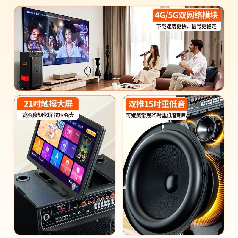 广场舞音响带显示屏家庭ktv音响歌K歌一体机卡拉ok户外音箱套装点