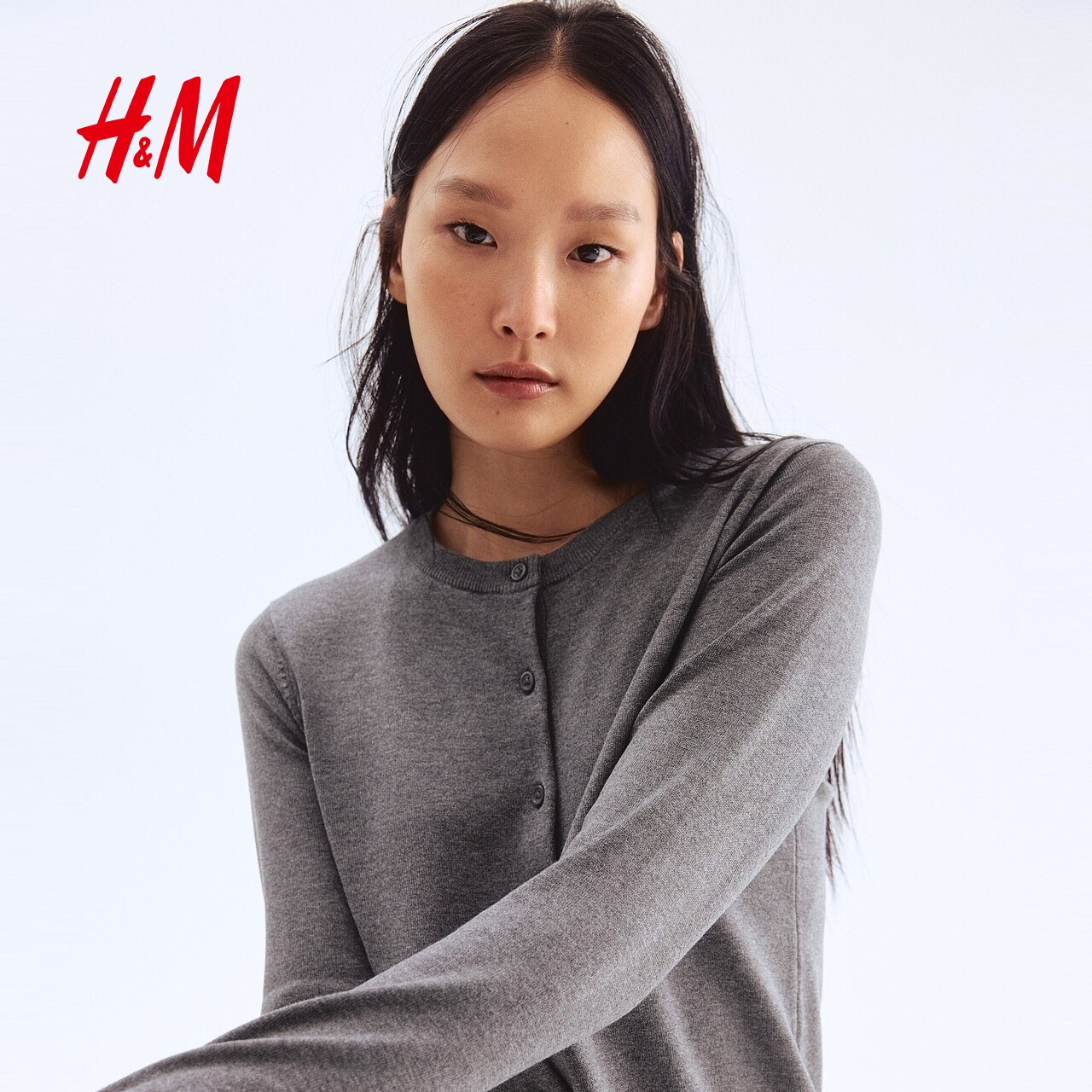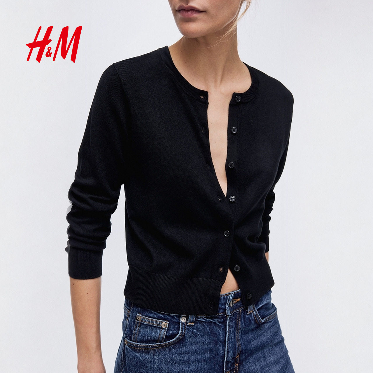 HM女装毛针织衫春季保暖时尚潮流内搭气质开衫0579541