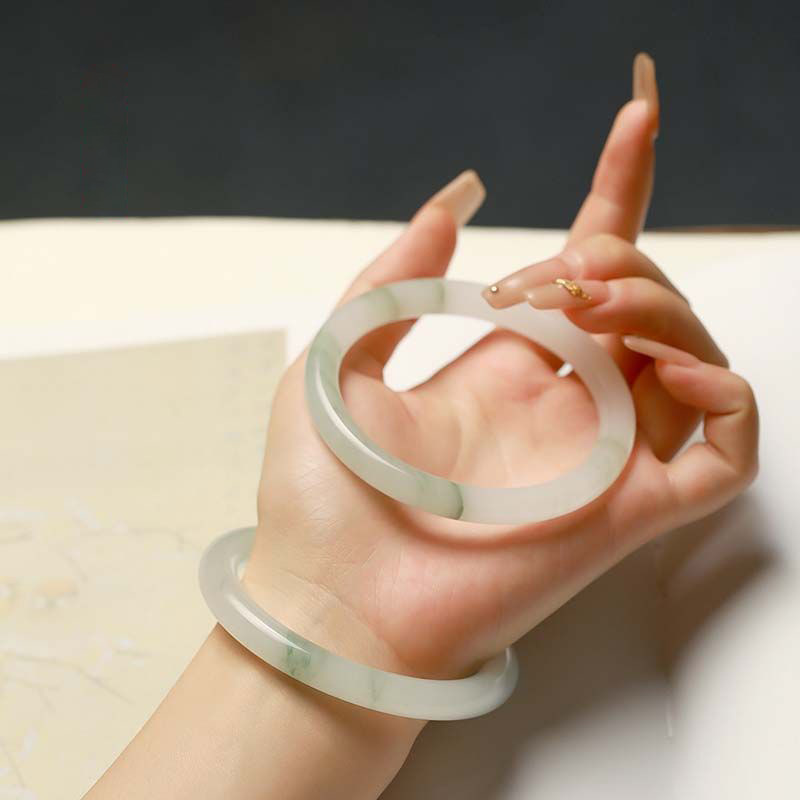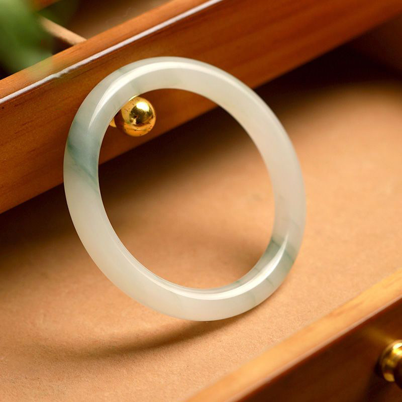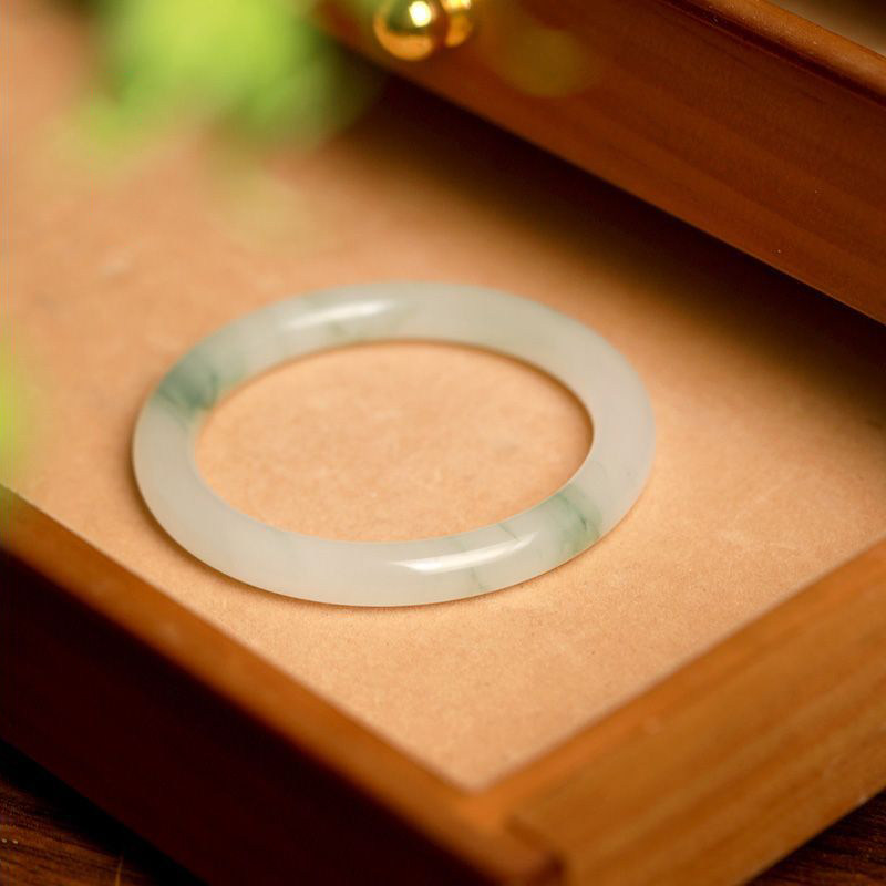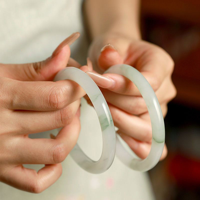 天山翠手镯女款国风翠玉冰翠飘花玉镯气质冰种女镯高级感圈口圆条