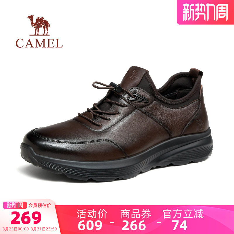 骆驼男鞋2026春季新款真皮加绒皮鞋男士时尚厚底商务休闲运动皮鞋