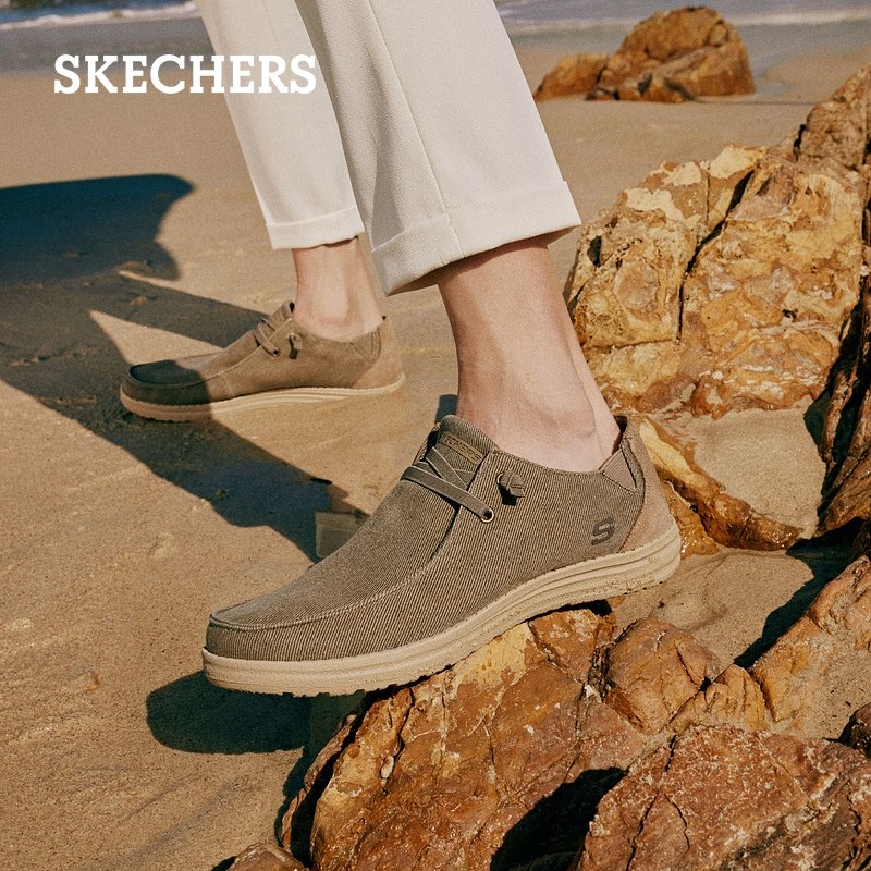 斯凯奇官方outlet男士帆布鞋子软底布鞋轻便休闲板鞋子