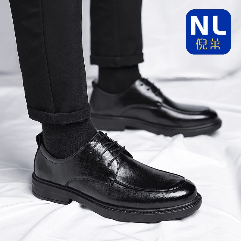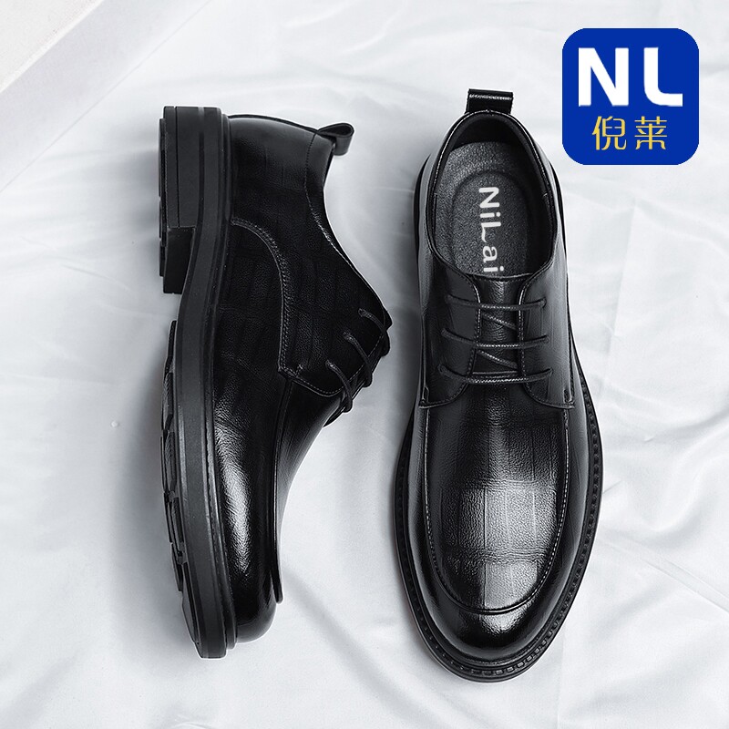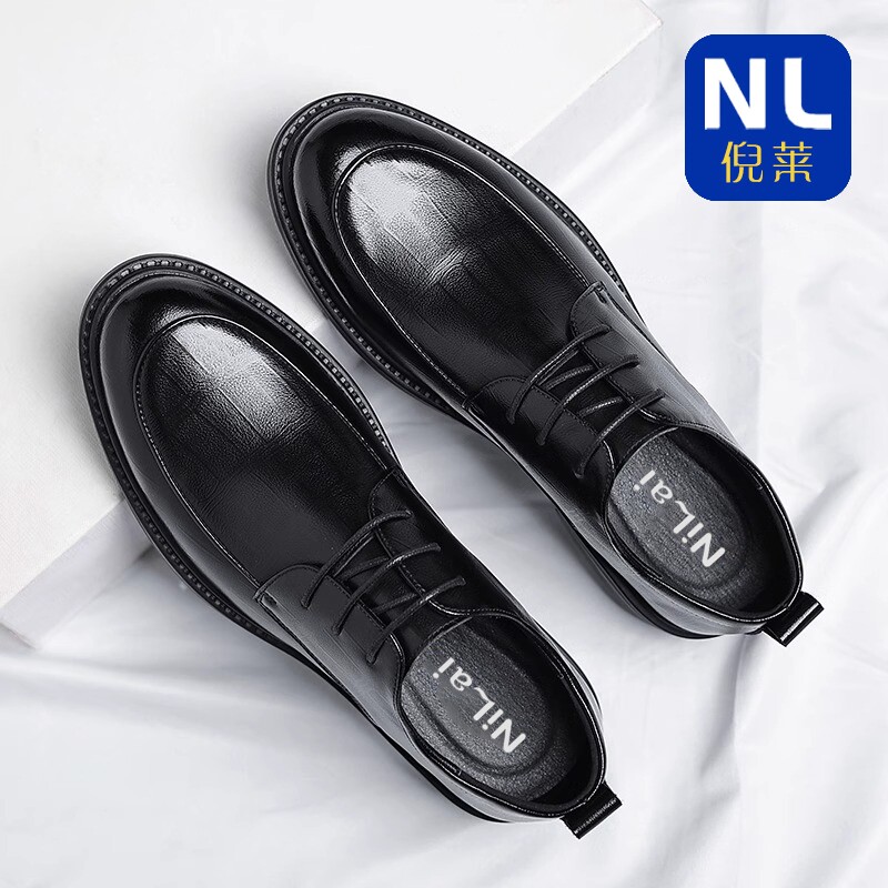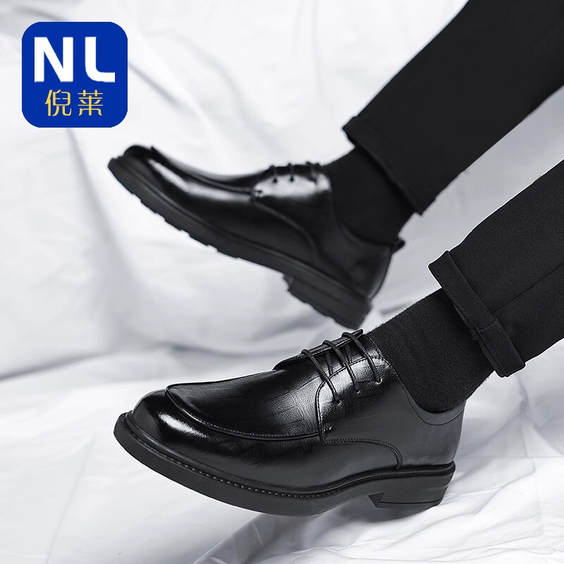 倪莱皮鞋男士春秋季商务正装英伦尖头透气软底增高结婚新郎德比鞋