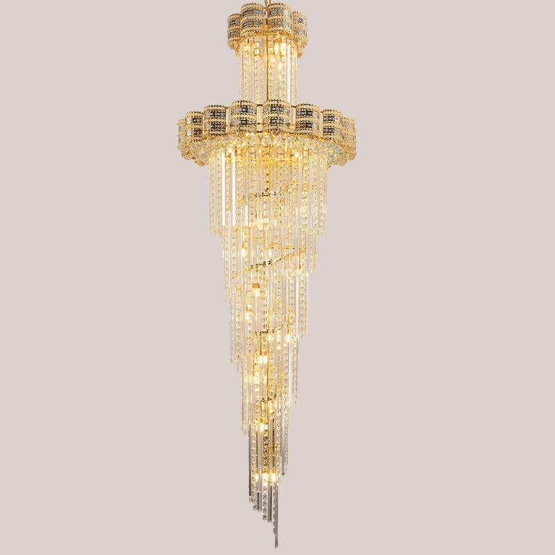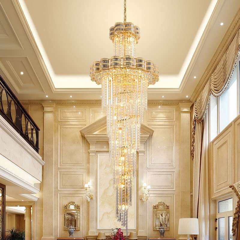 复式楼吊灯别墅中空楼大厅水晶吊灯现代简约客厅旋转楼梯灯长吊灯