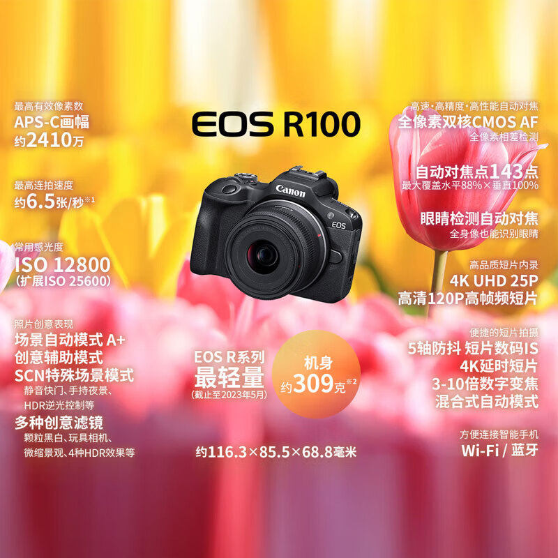 佳能R100入门微单数码相机学生家用旅游高清vlog视频半画幅微单
