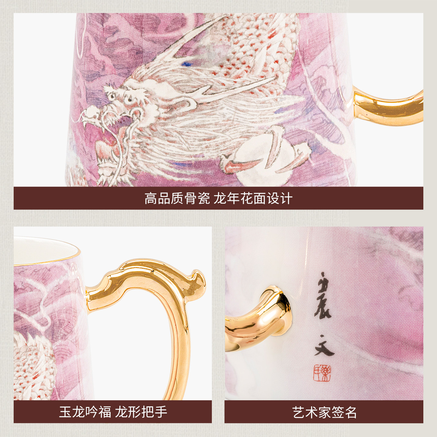 玛戈隆特龙年杯子陶瓷马克杯伴手礼家用轻奢高颜值杯子送礼水杯