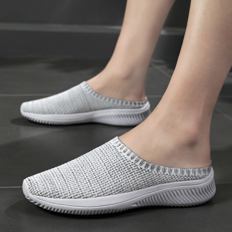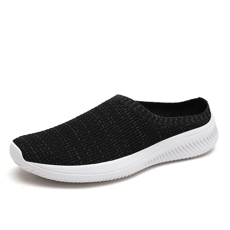 夏季透气大码男鞋外穿运动休闲飞织鞋46码懒人一脚蹬无后跟半拖鞋