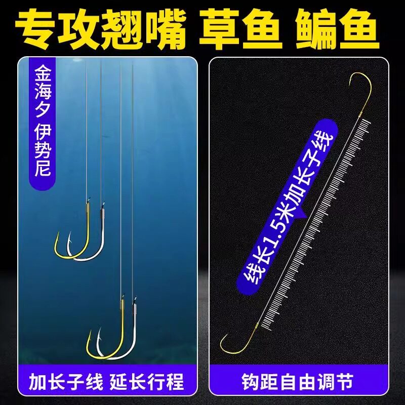 翘嘴海夕伊势尼加长子线双钩成品行程大物钩子青草鳊鱼钩草鱼青鱼
