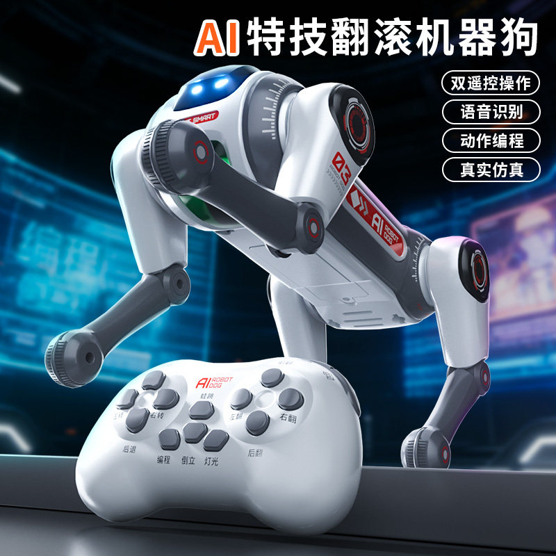 AI人工智能翻跟斗头机器狗玩具遥控机械儿童男孩礼物2026新款编程
