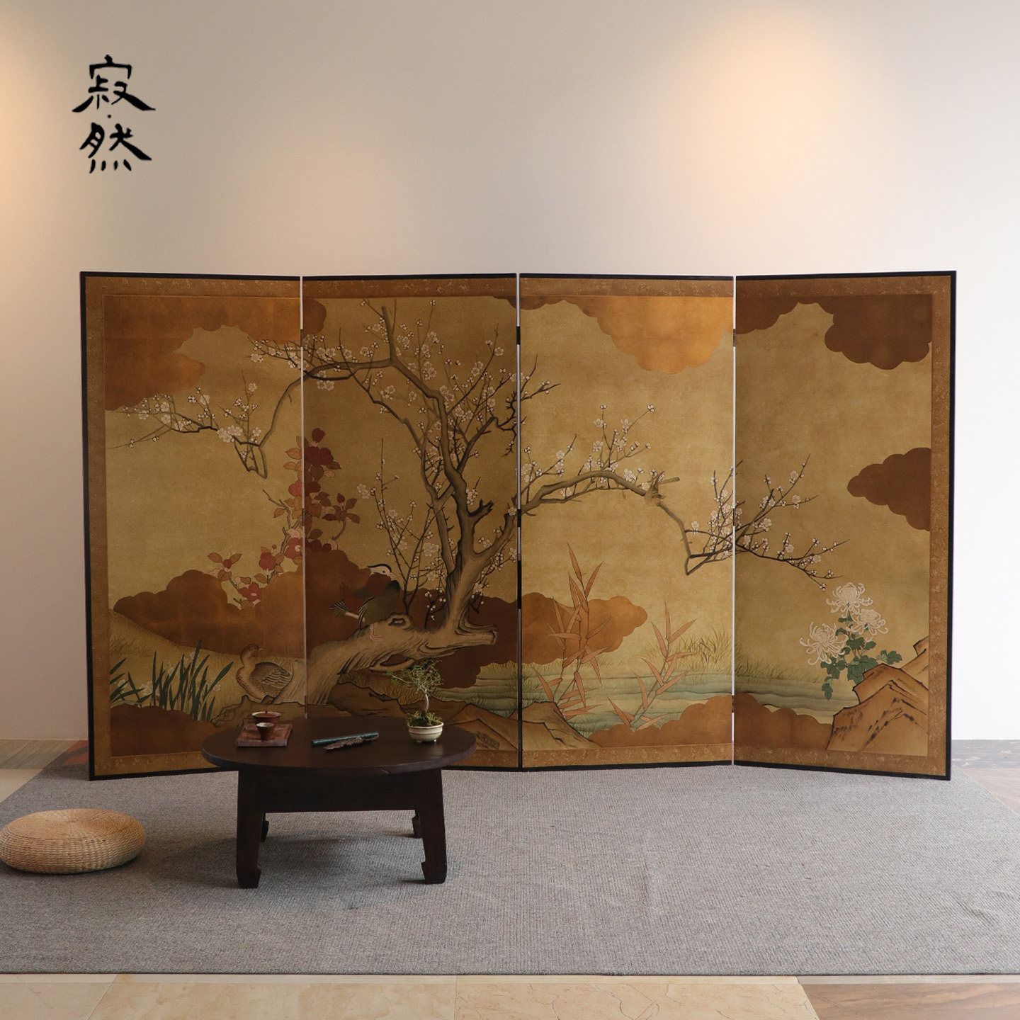 寂然东方宋代美学屏风隔断客厅酒店入户玄关遮挡折叠中式金箔屏风