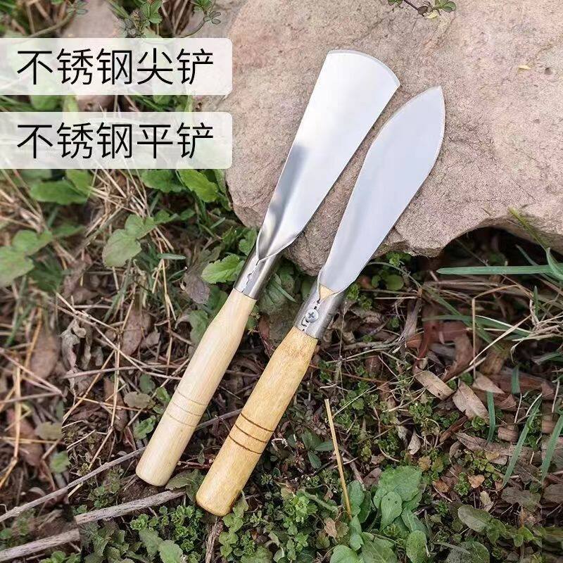 园艺挖土神器锰钢种花挖野菜小铲子家用不锈钢铲木柄园艺工具赶海