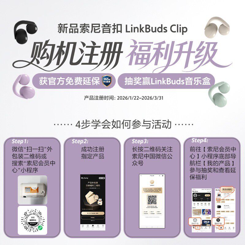 Sony/索尼音扣LinkBuds Clip耳夹耳机开放式蓝牙耳机通勤办公运动
