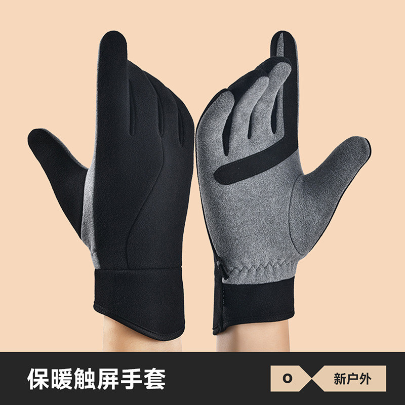 新款冬季保暖手套加绒加厚防寒触屏骑行开车户外运动德绒棉手套