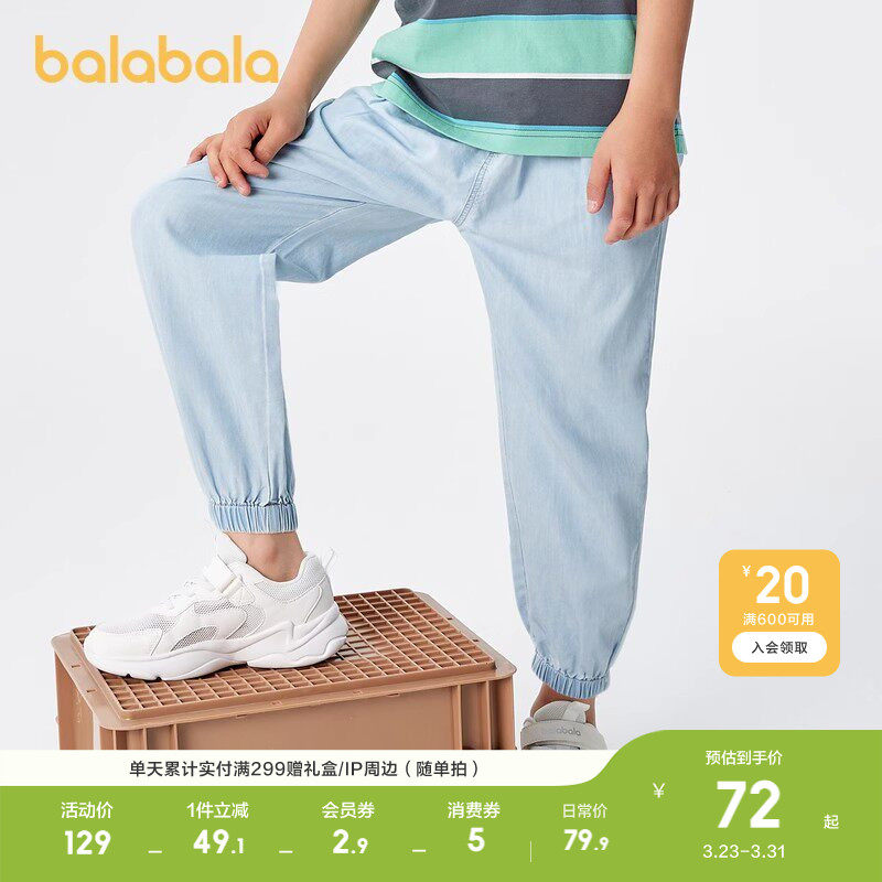 巴拉巴拉童装儿童牛仔裤男童春夏装防蚊薄款大童天丝牛仔裤子束脚
