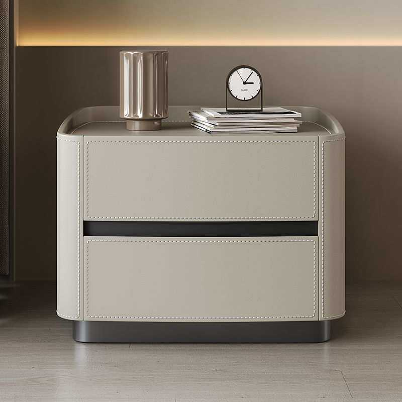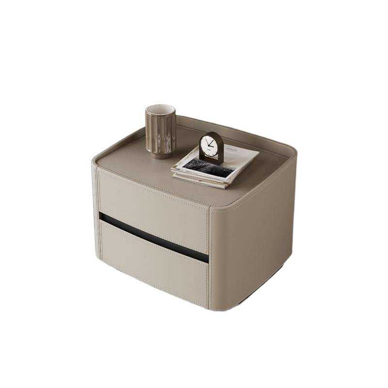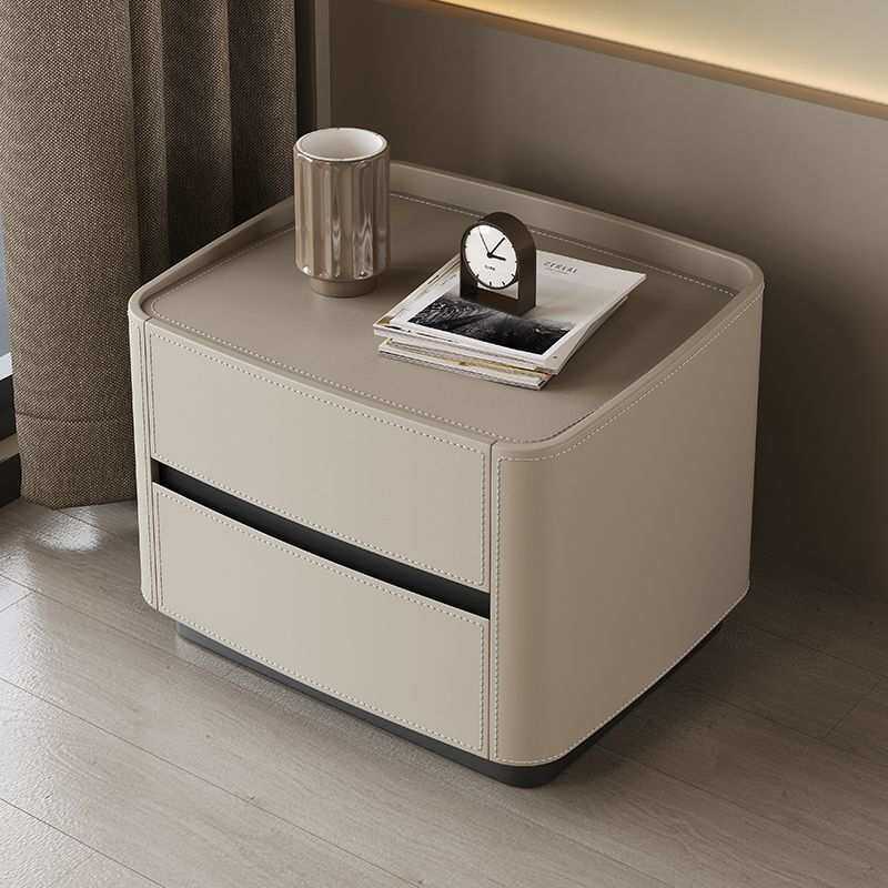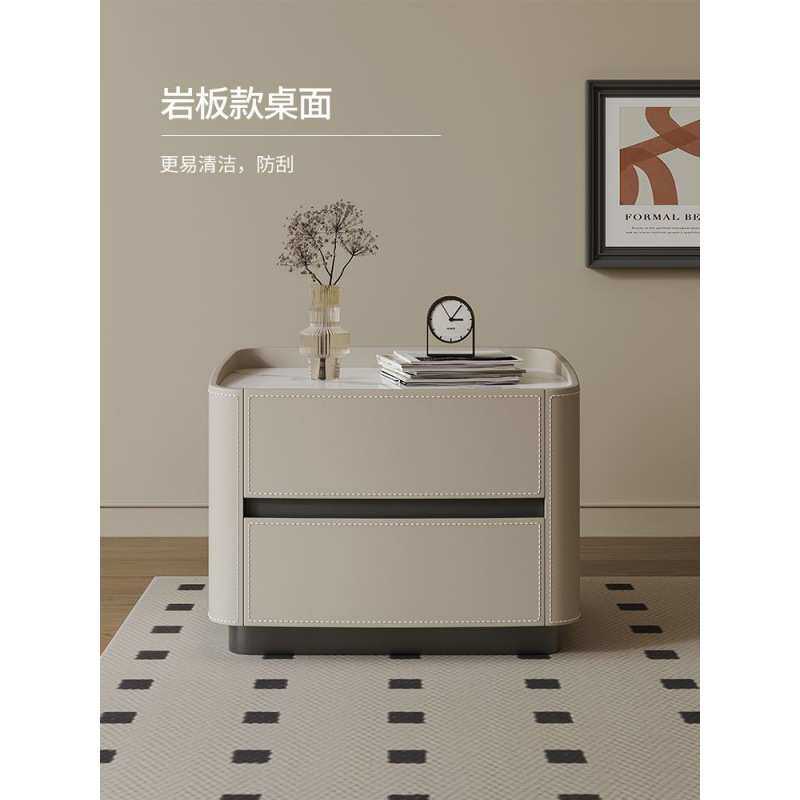 意式新款皮艺极简床头柜轻奢高级卧室简约现代实木收纳床边柜网红
