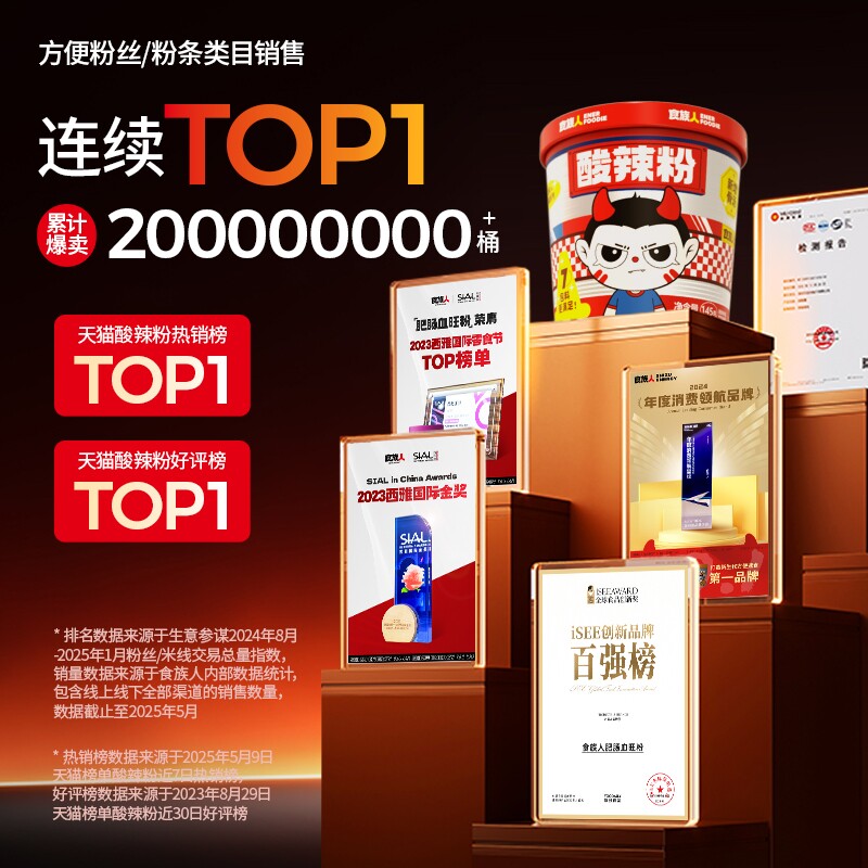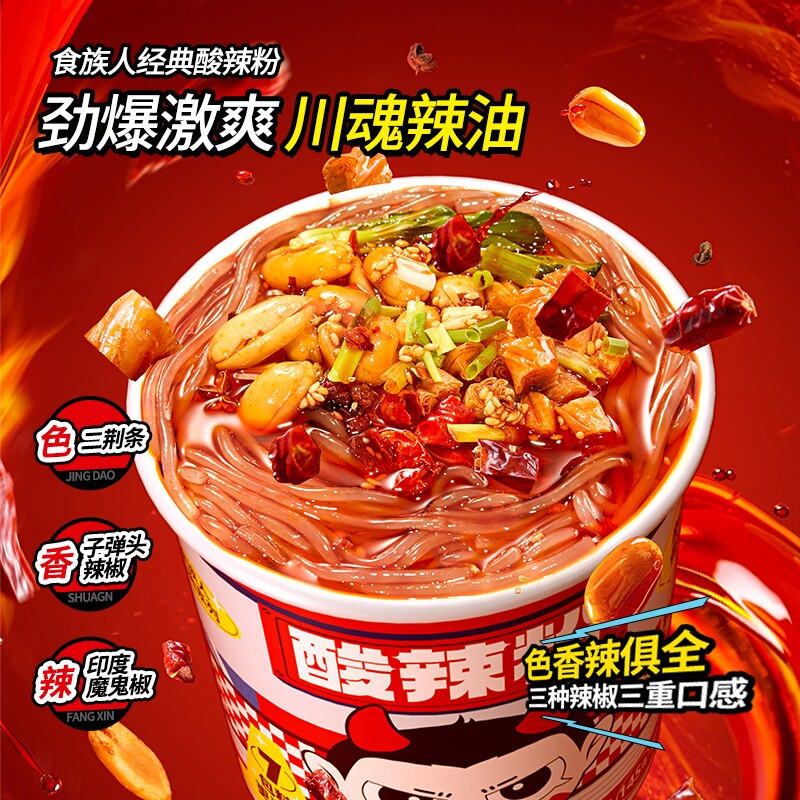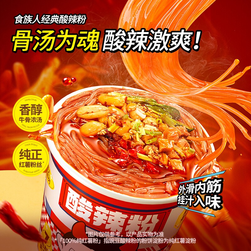 食族人经典骨汤酸辣粉升级花生爆肚粉冲泡整箱桶装方便速食夜宵