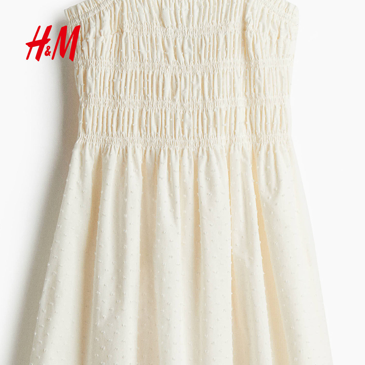 HM女装连衣裙夏季美式甜心风时尚休闲上身缩褶棉质连衣裙1275782