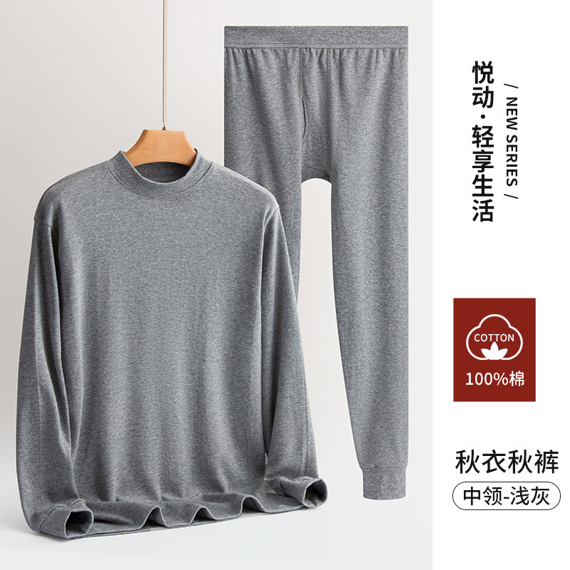 100%纯棉秋衣秋裤套装男士冬季全棉薄款保暖内衣套装抗寒棉毛衫线
