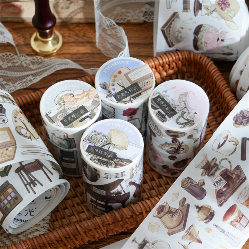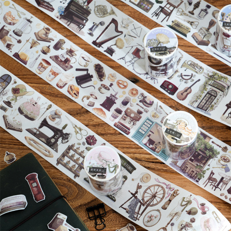 M|香榭丽舍和纸胶带 日常元素咖啡乐器缝纫复古文艺手账拼贴画