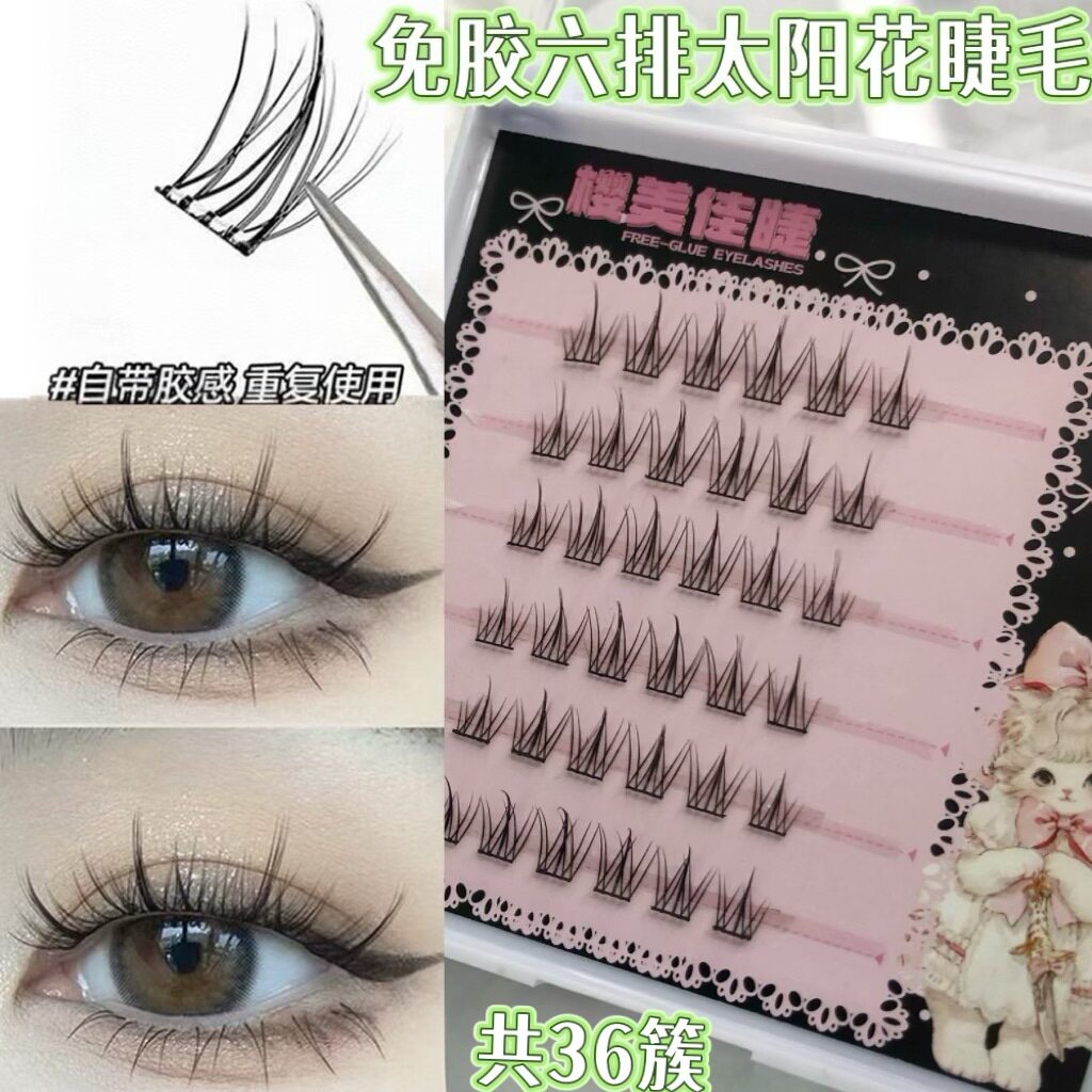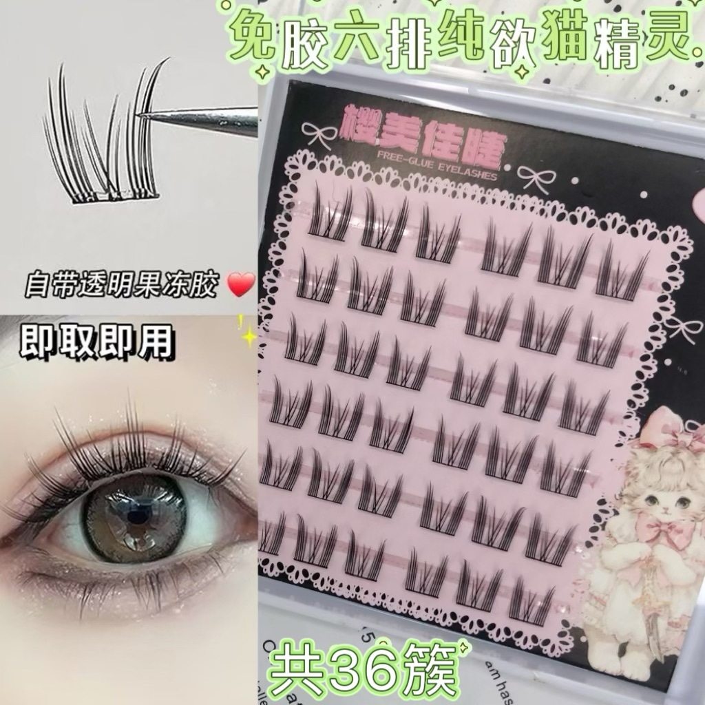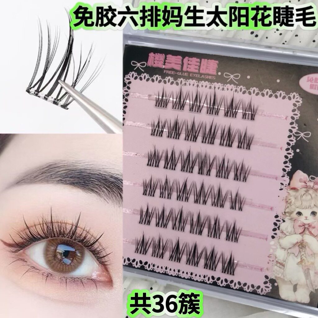免胶三连鱼尾假睫毛软毛懒人自然素颜妈生太阳花纯欲猫精灵假睫毛
