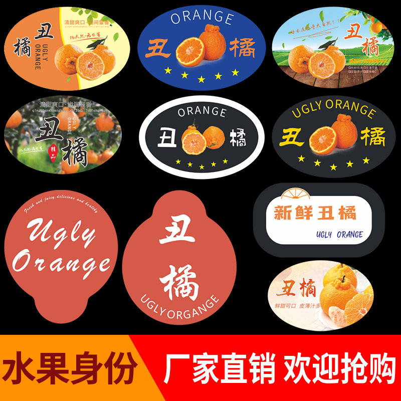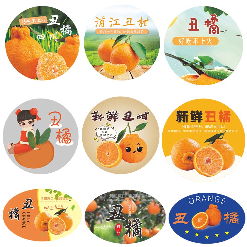 丑橘标签贴纸粑粑蜜柑橘不知火丑八怪橘子水果贴标不干胶商标定制