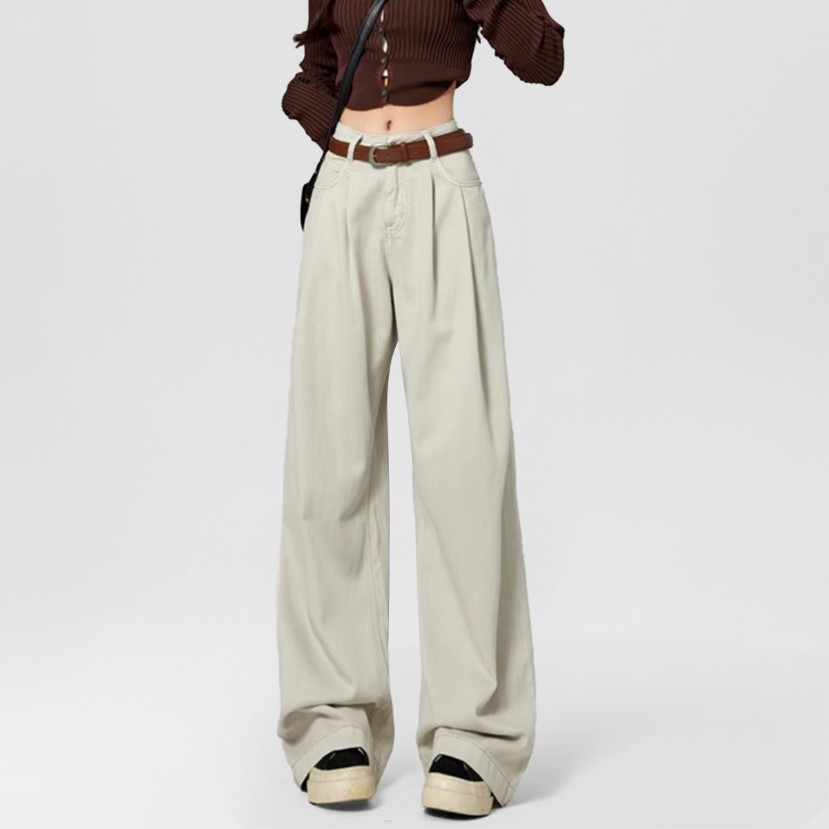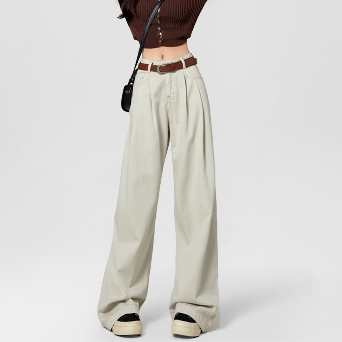 one more2025年文墨浅色职场工装裤女秋季时尚休闲裤百搭老爹韩版
