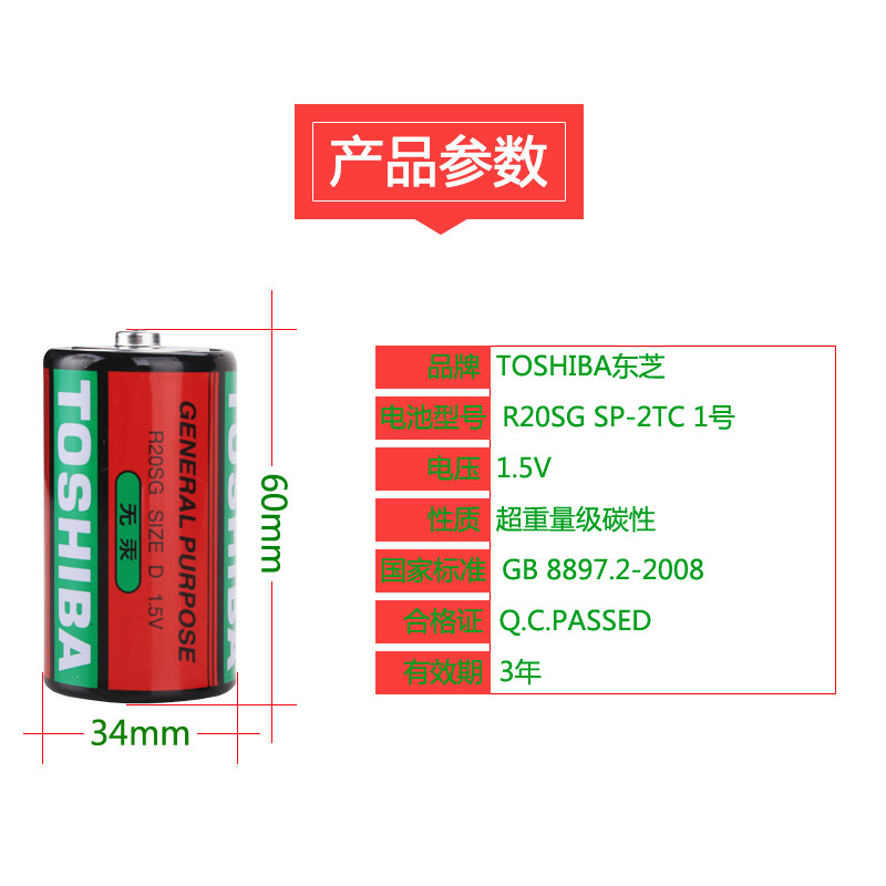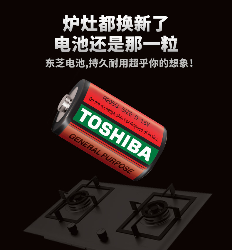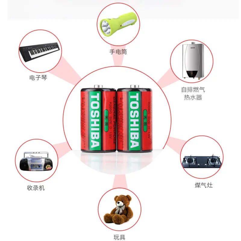 TOSHIBA东芝1号电池碳性1.5V一大号D燃气灶热水器手电筒电子琴用
