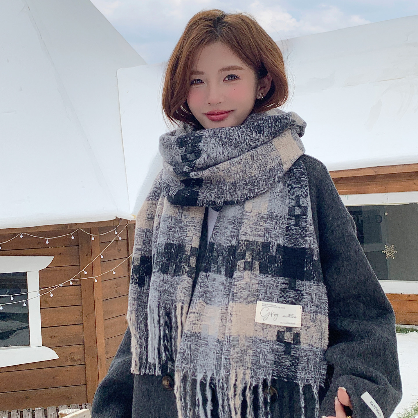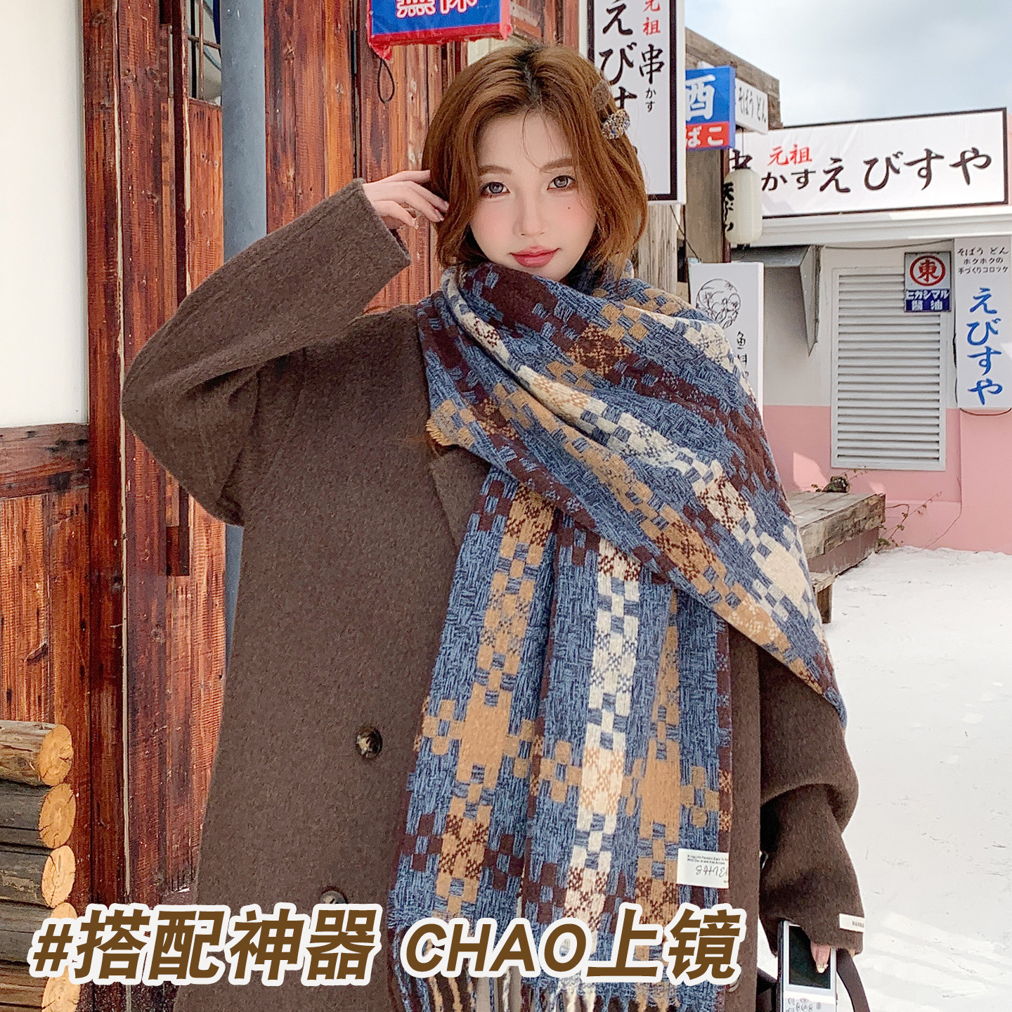 三福格子围巾韩系高级感保暖围脖披肩两用旅游外搭女冬季2025新款