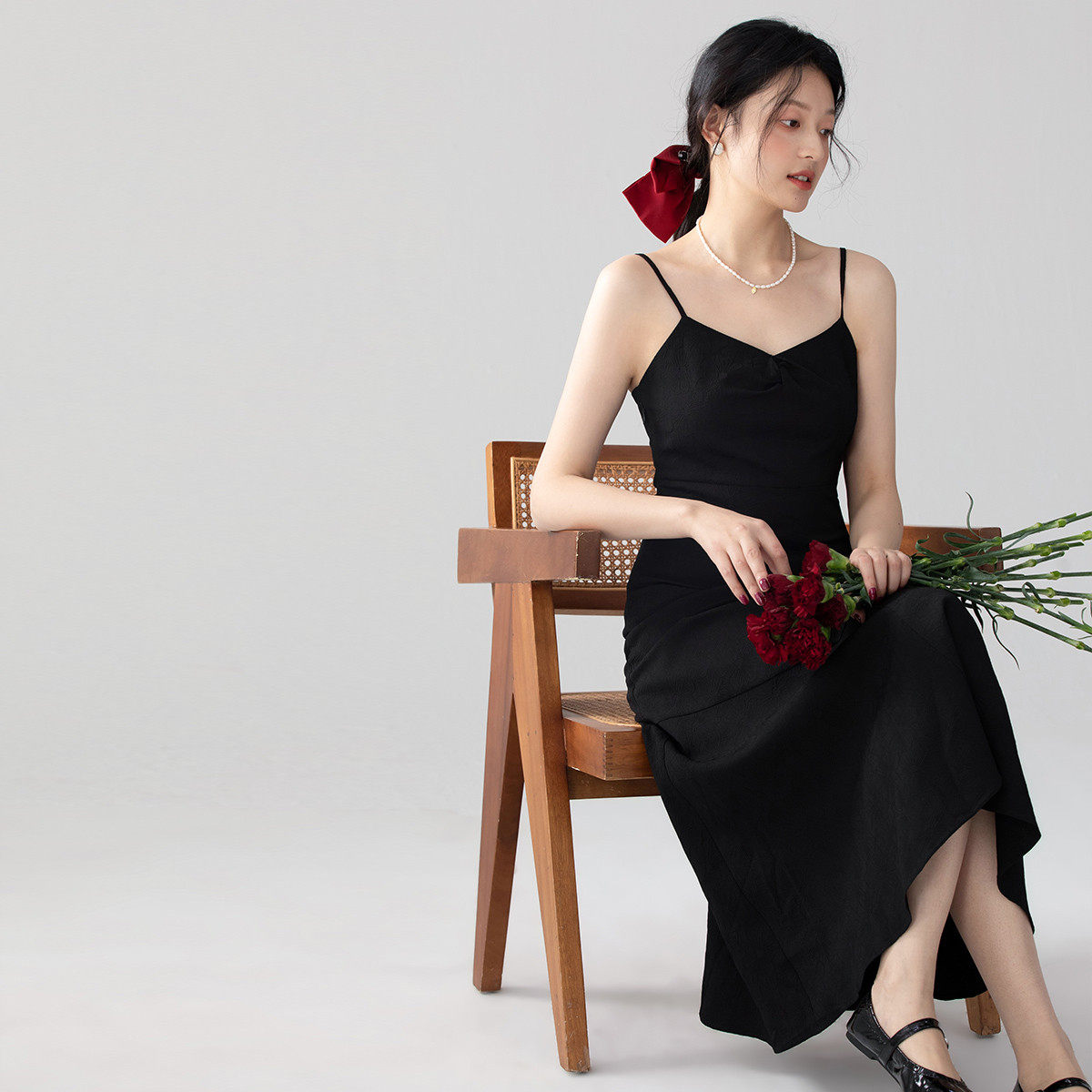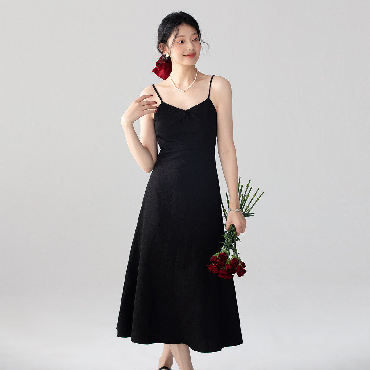 one more2025夏季新款修身吊带连衣裙女高级感法式小黑裙度假裙子