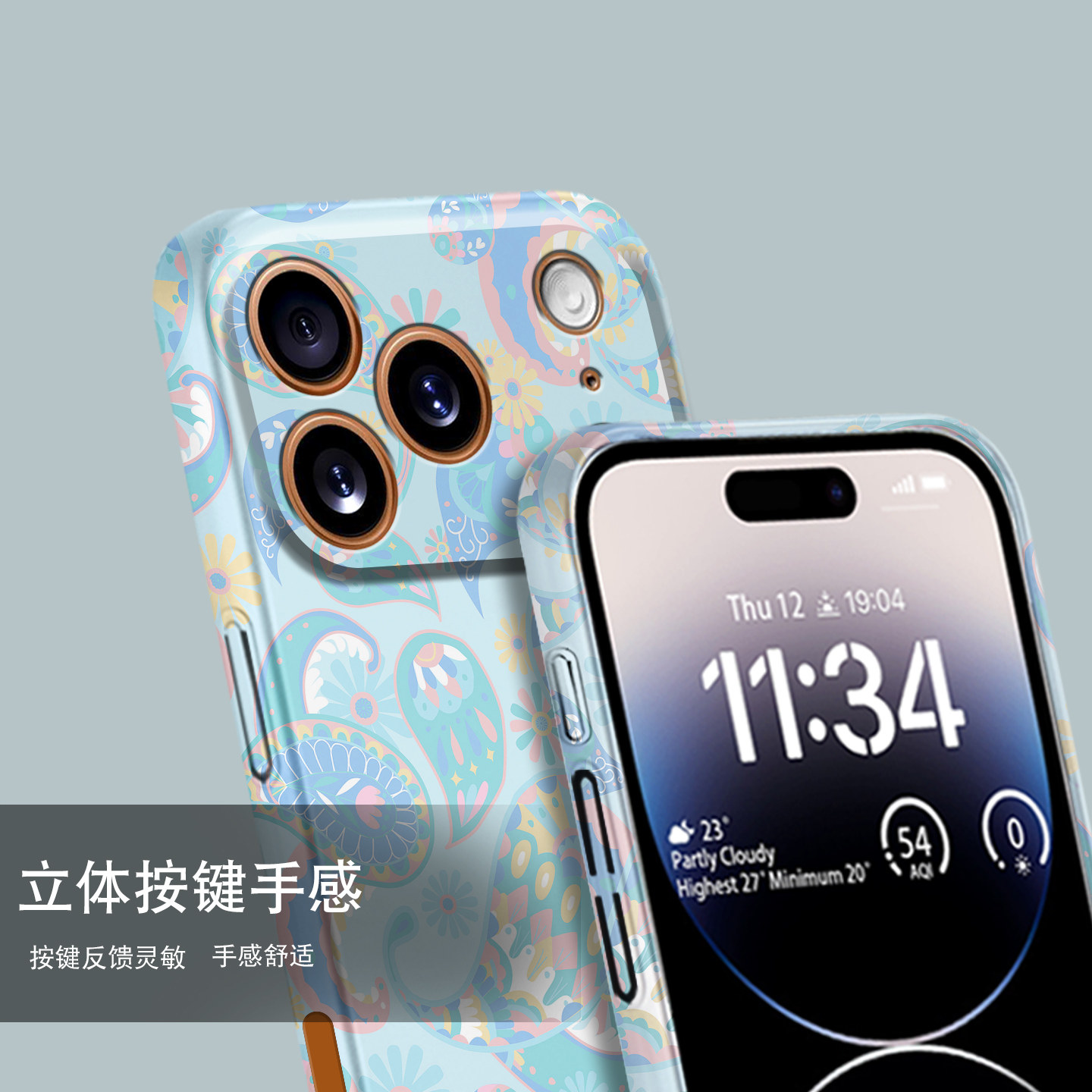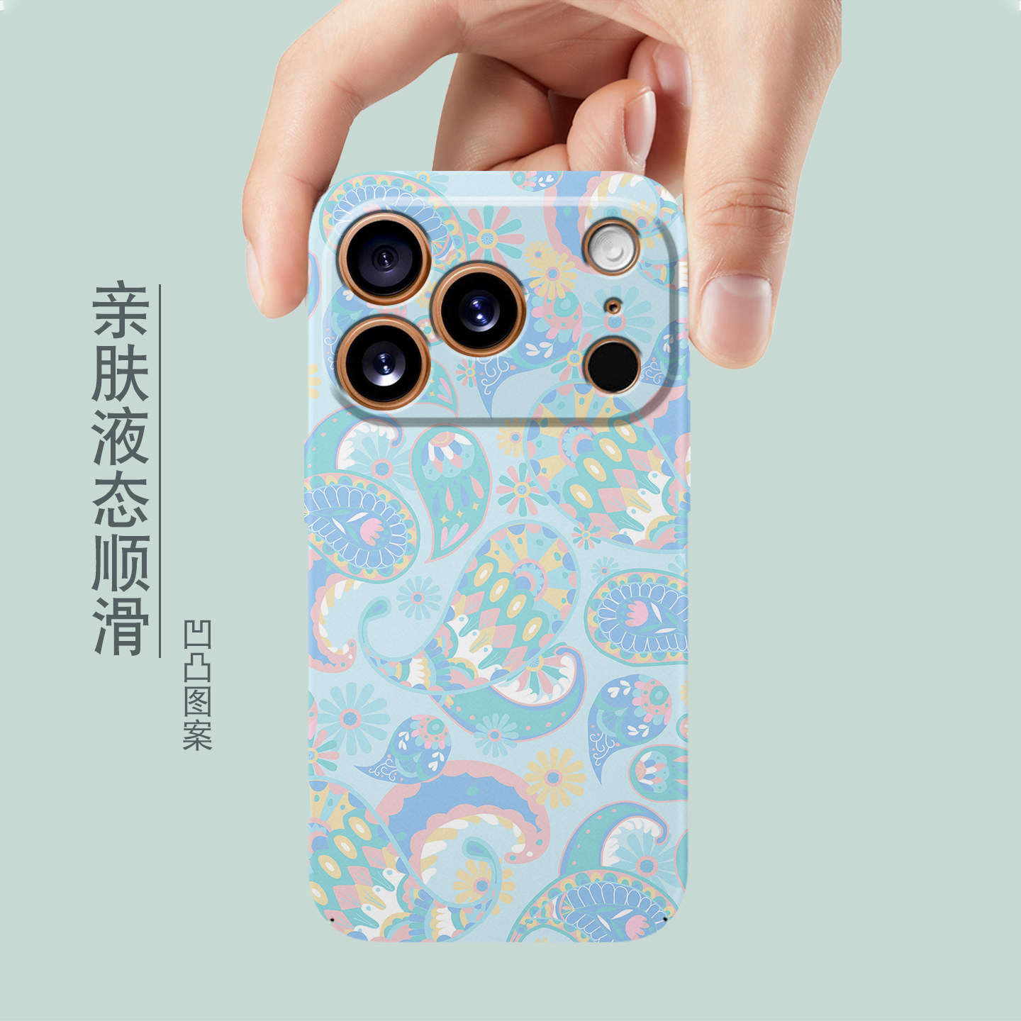 适用iPhone17Pro手机壳新款iPhone16Promax淡蓝腰果花简约硬壳17Air超薄15Pro夜光mini全包14个性13创意SE3壳
