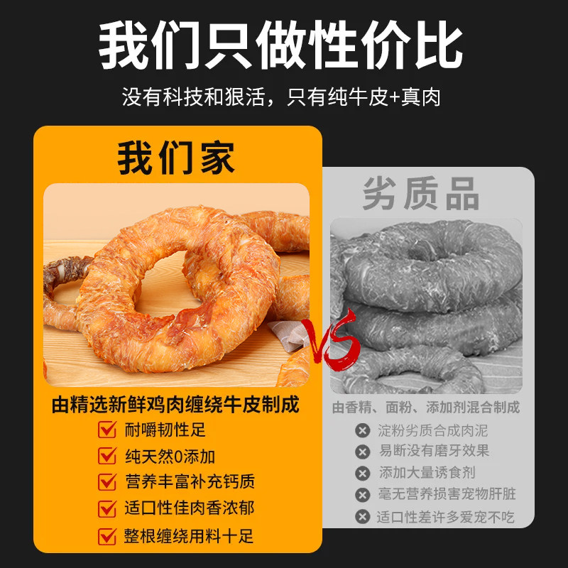 狗狗磨牙棒牛皮鸡肉甜甜圈宠物零食洁齿骨小型犬通用磨牙零食