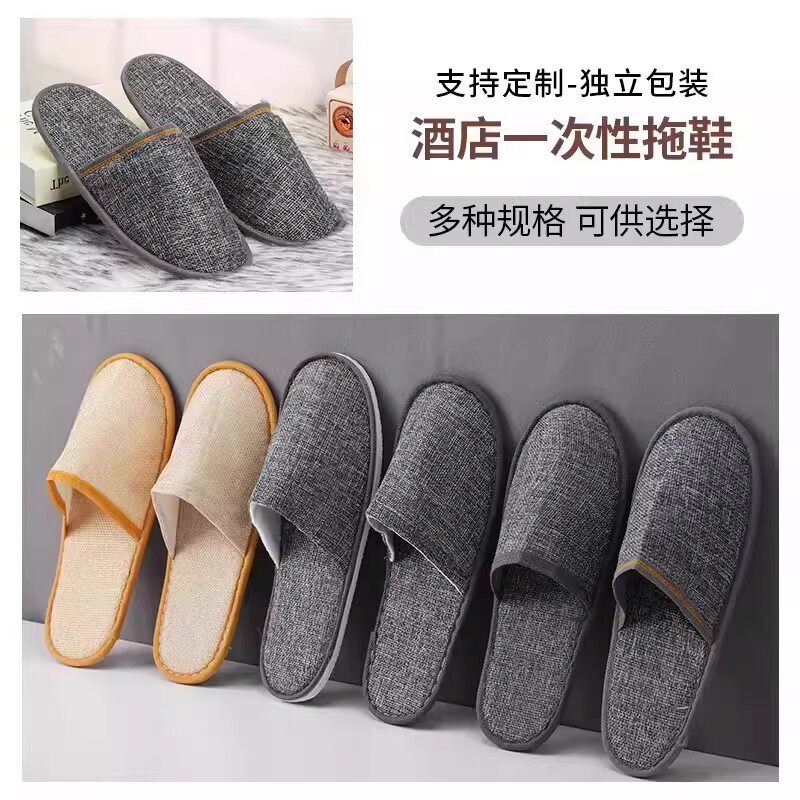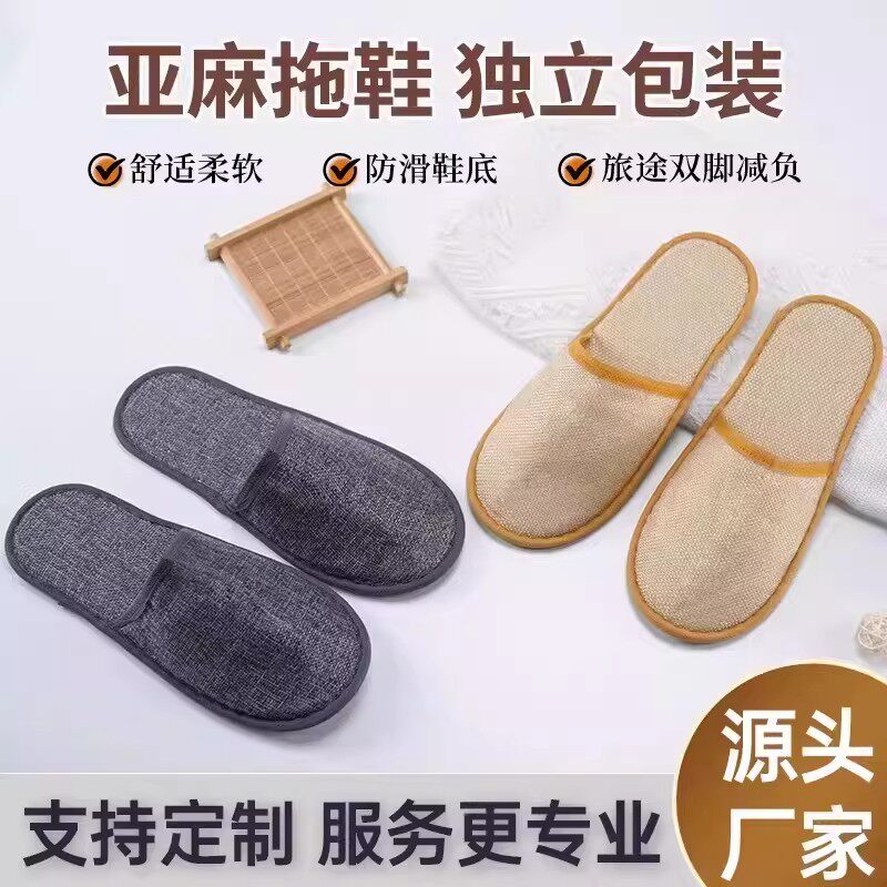 酒店一次性拖鞋宾馆民宿专用居家室内待客亚麻加厚大防滑棉麻批发