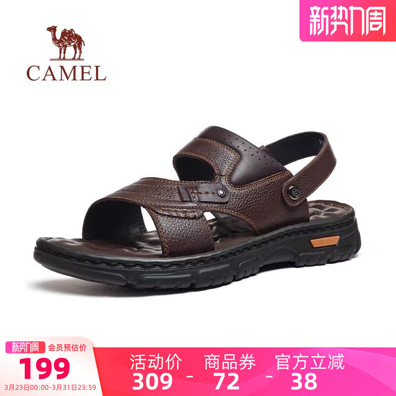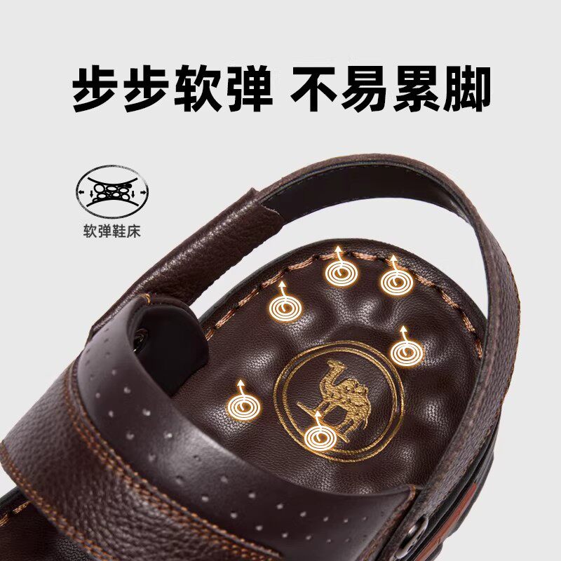 骆驼男鞋商务凉鞋骆驼2026夏季新款男舒适透气牛皮两穿爸爸沙滩鞋