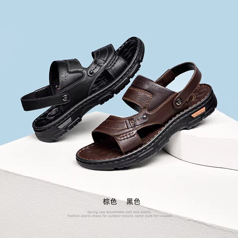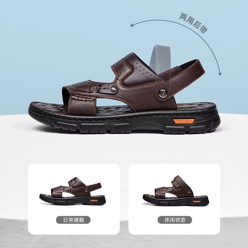 啄木鸟沙滩鞋男士头层牛皮牛筋底凉鞋真皮休闲防滑两用爸爸凉拖鞋