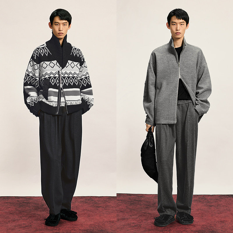 羊毛混纺针织呢,锥形西装裤干净利落