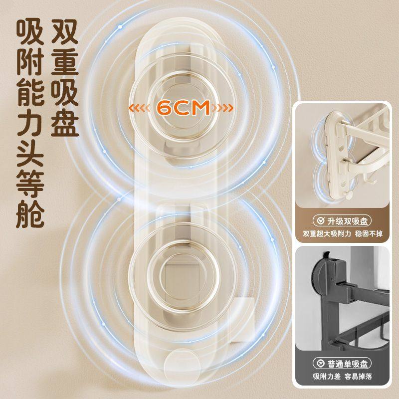 吸盘毛巾架卫生间免打孔浴室置物架浴巾架一体挂杆淋浴房厕所折叠